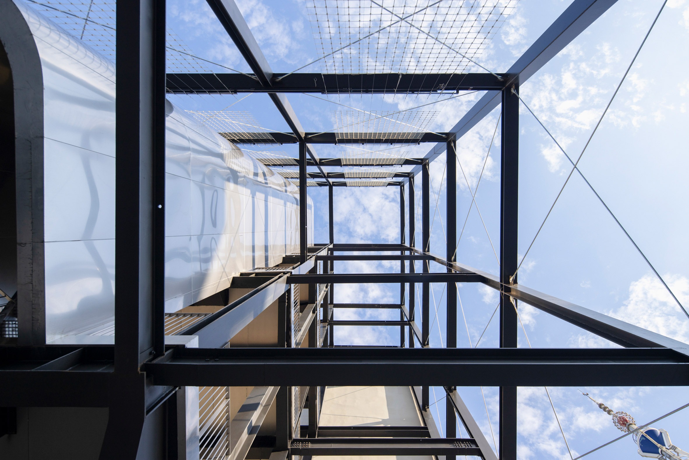 여기서 노출된 덕트는 단순한 기능적 요소가 아니다. LLLAB은 이를 건물의 "숨결과 심장박동"이라 불렀다. 끊임없이 데이터를 처리하고 열을 배출하는 서버의 생명력을 가시화한 것이다. 강철 그리드는 물리적 구조를 이룰 뿐 아니라 가상 세계의 언어를 떠올리게 한다. 정보와 질서와 흐름을 표현하는 디지털 격자의 메타포다. "격자는 건물의 물리적 구조를 이루는 동시에 가상 세계의 언어, 즉 디지털 매트릭스를 연상시킵니다"라고 건축가는 설명했다.