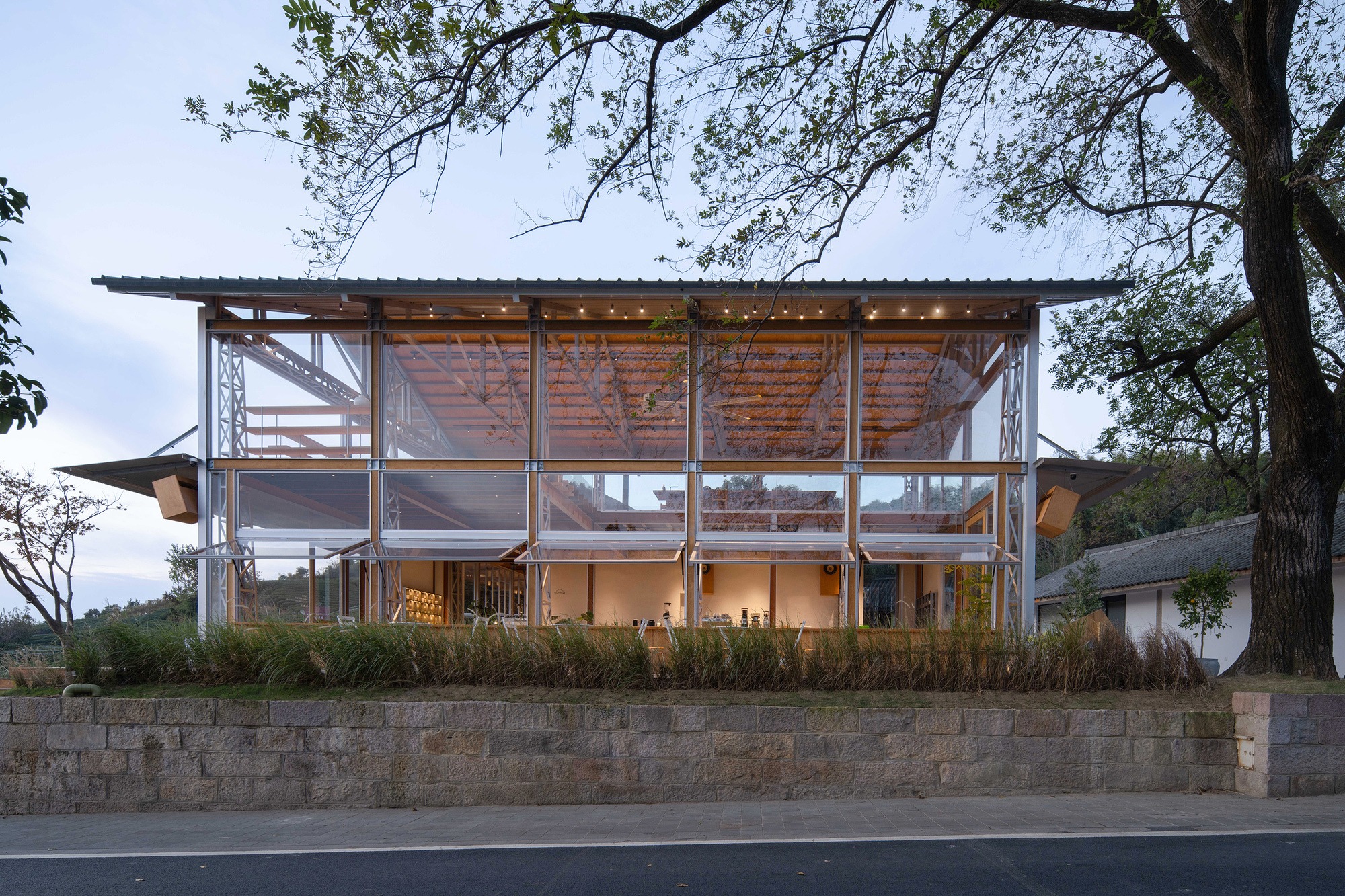투명한 구조, 겹쳐진 시간 차밭 위에 펼쳐진 Hill Architecture의 new 33 coffee