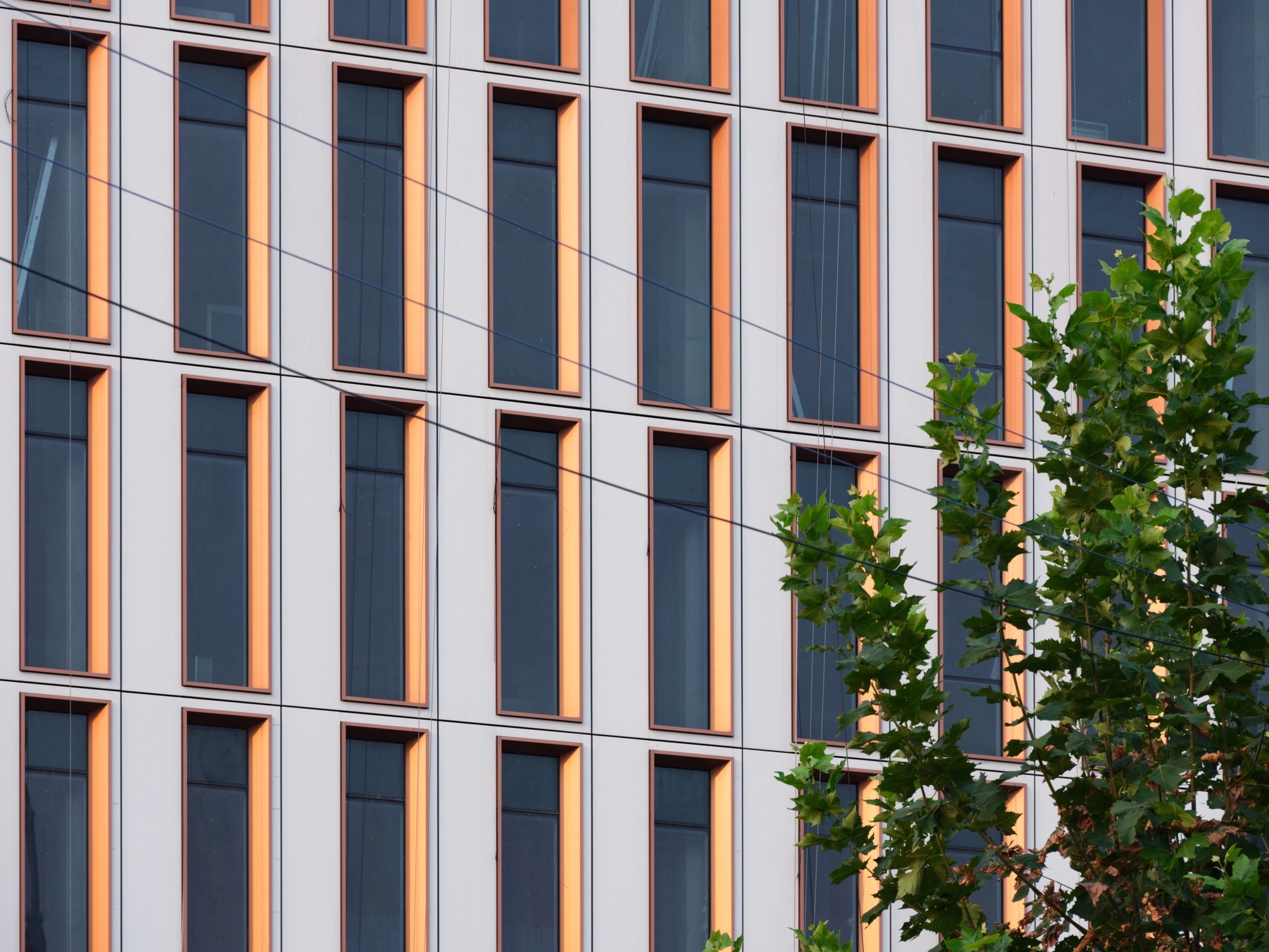 The building envelope emerged from environmental and regulatory analysis rather than formal expression. In response to reflectivity restrictions and adjacent residential proximity, a parametric optimization process calibrated solid-to-glass ratios according to orientation and contextual sensitivity. Lower levels increase opacity to reduce glare and visual intrusion toward nearby housing, while upper levels facing unobstructed river views incorporate greater transparency to maximize daylight and panoramic access. This gradient façade reduces cooling demand by approximately 12 percent while maintaining visual comfort and envelope performance.
