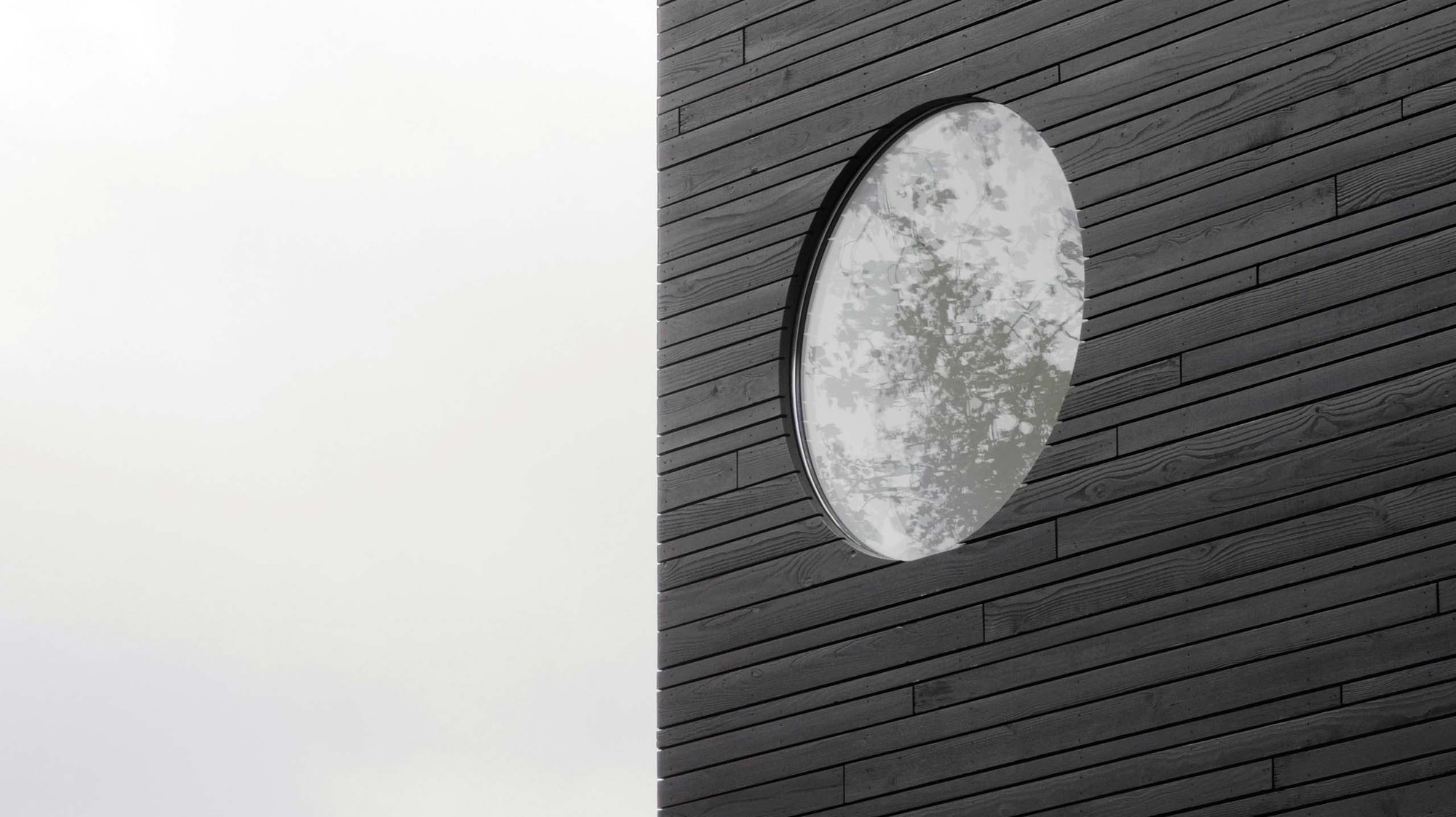 교차로, 도로와 면하는 입면 디자인은 최대한 개방을 선택, 건물의 인지성을 확보하는 동시에 숲으로 연결되는 입면은 원형 창문으로 최소한의 확장을 표현한다.