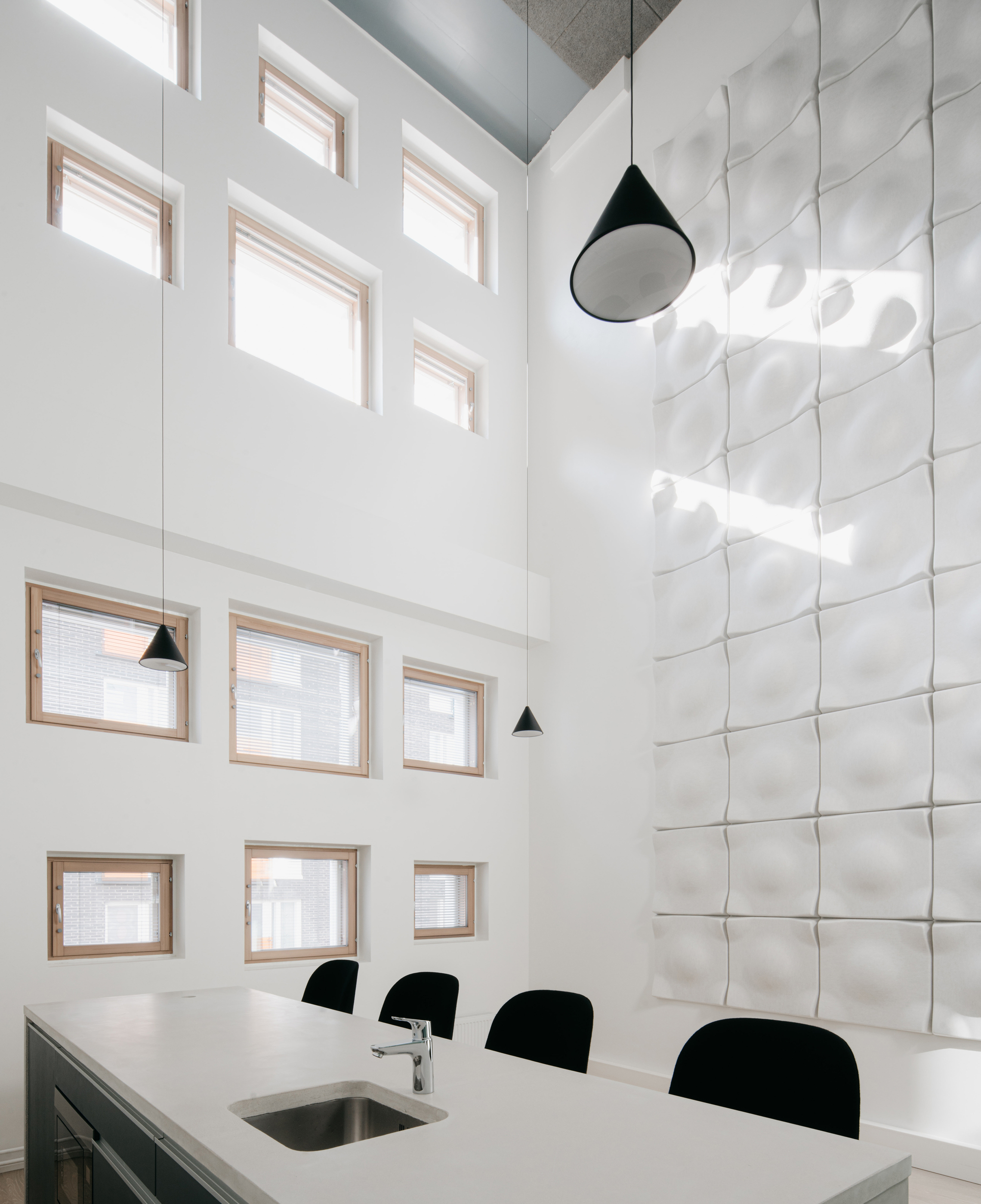 Based on an open architecture competition, Jätkäsaari comprehensive school of 800 pupils in Helsinki is the latest evolution of contemporary Finnish schools and designed in accordance with Finland's new national curriculum, which emphasizes e.g. phenomenon-based and multidisciplinary learning.