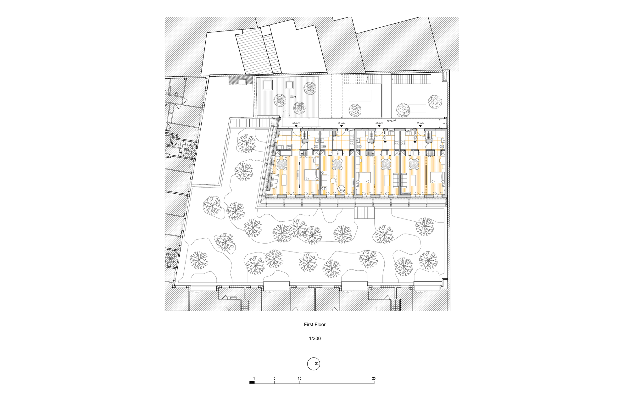 어반보이드와 같은 대지에 새로운 주거공간을 구성합니다. 빌딩 숲 속에 위치한 대지의 구축을 위해 습식공법(철근콘크리트 공법)이 아닌 건식공법, 목조건축으로 진행됩니다.