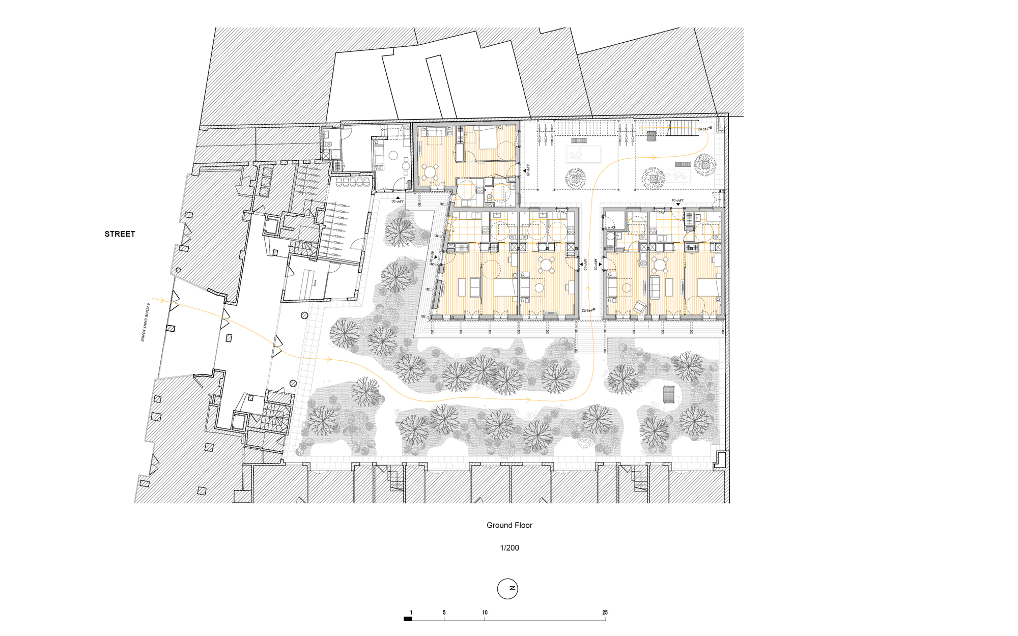 The project is located in the twelfth district of Paris, completed in October 2020 for the real estate company GECINA, enclosed at the heart of a block, surrounded by an apartment complex built in the 1970s.