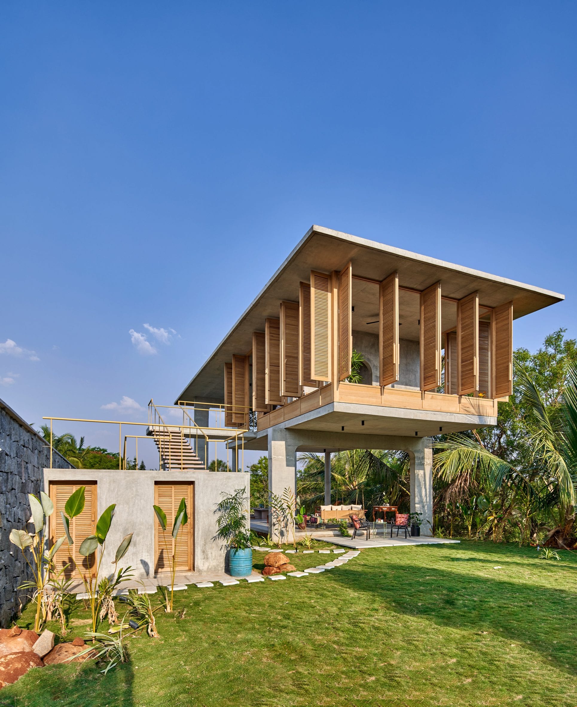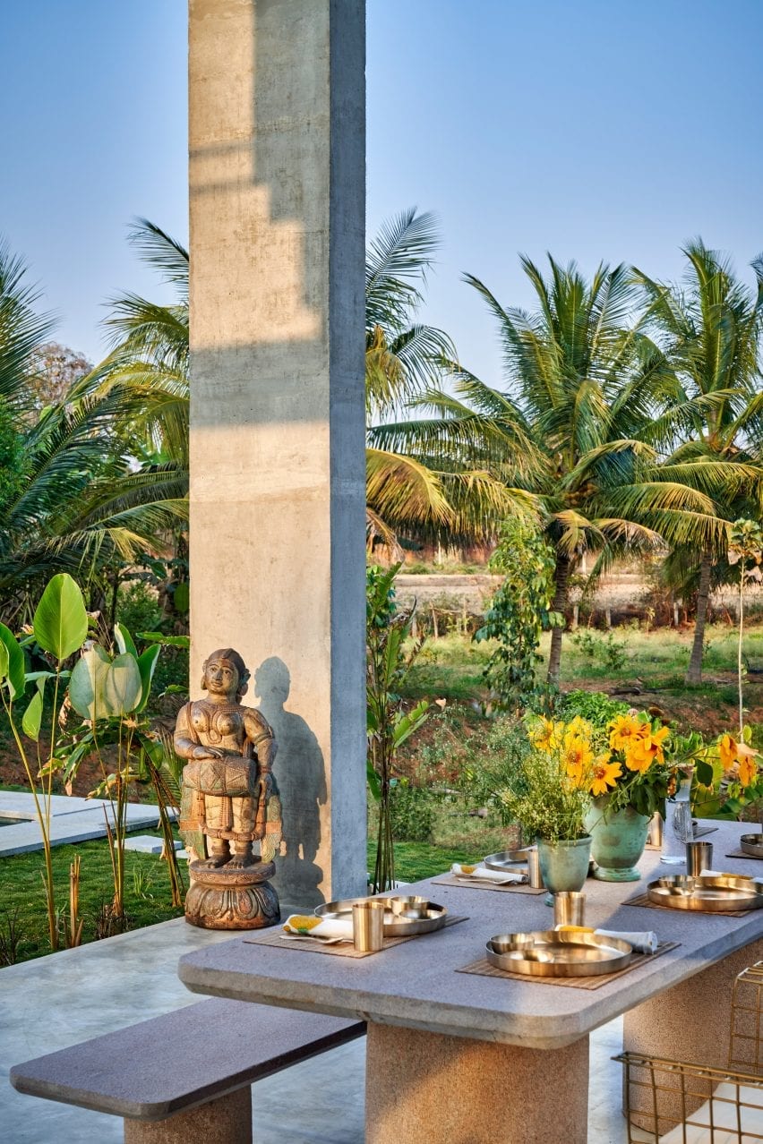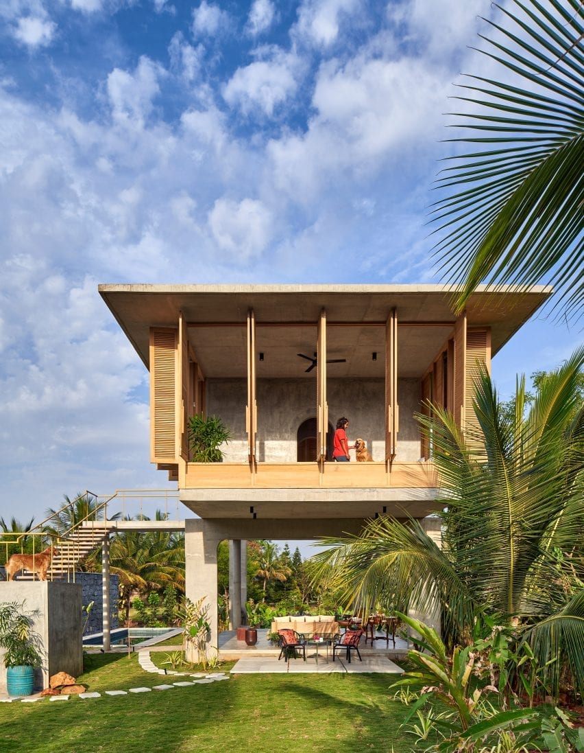 There are very few walls in this house in rural Bangalore, designed by architecture and design studio Taliesyn, so that residents can enjoy the tropical landscape surroundings.