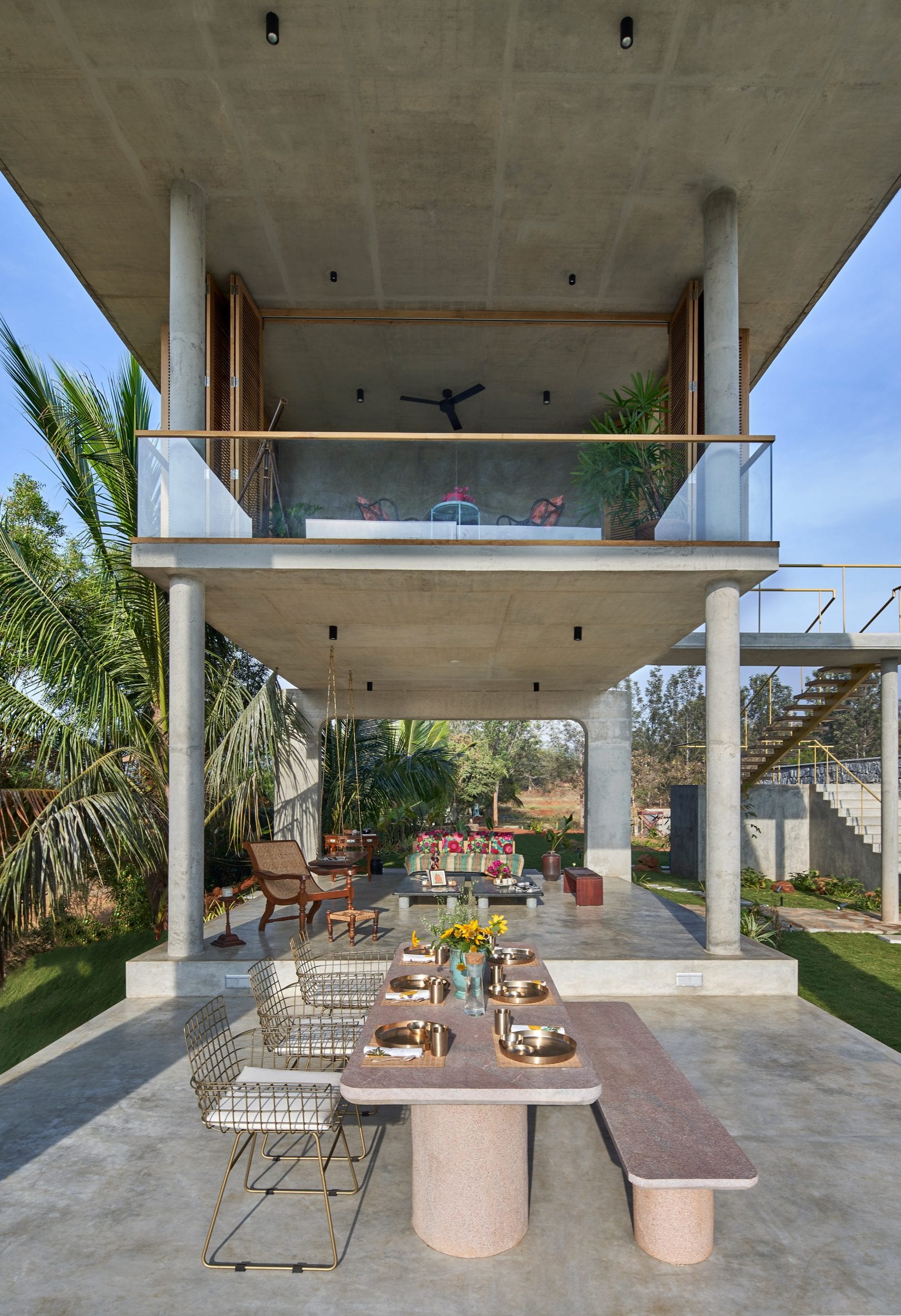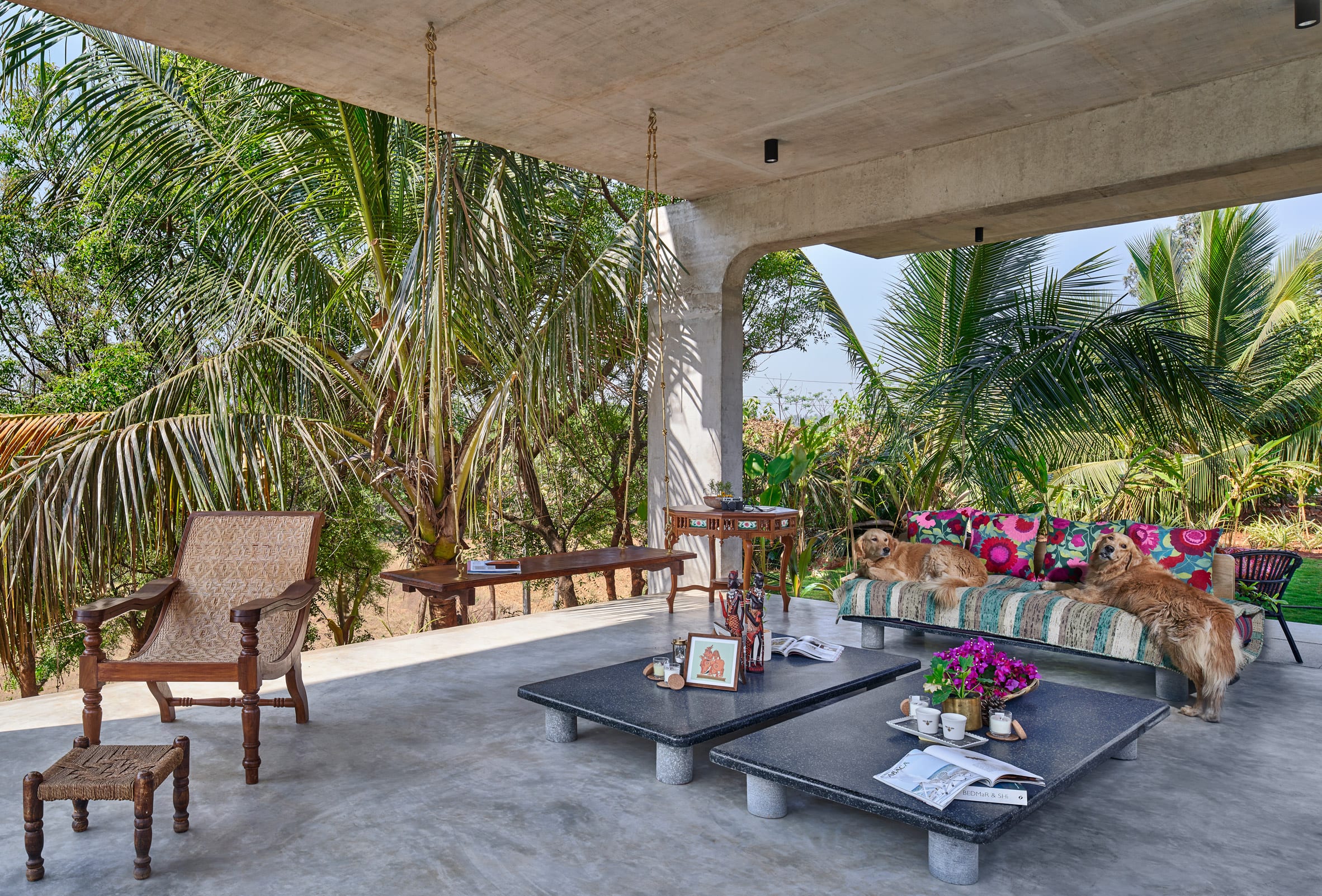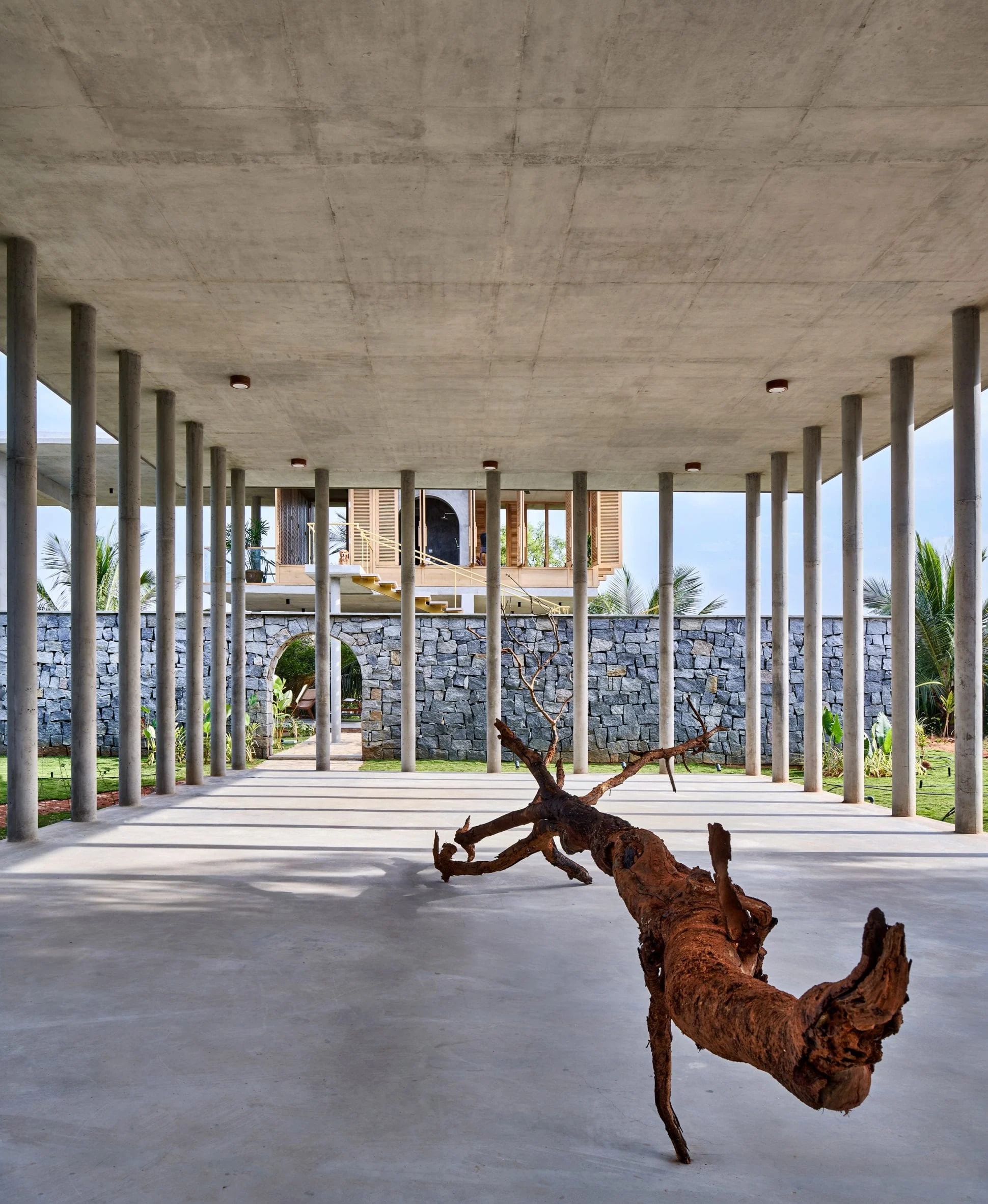 There are very few walls in this house in rural Bangalore, designed by architecture and design studio Taliesyn, so that residents can enjoy the tropical landscape surroundings.