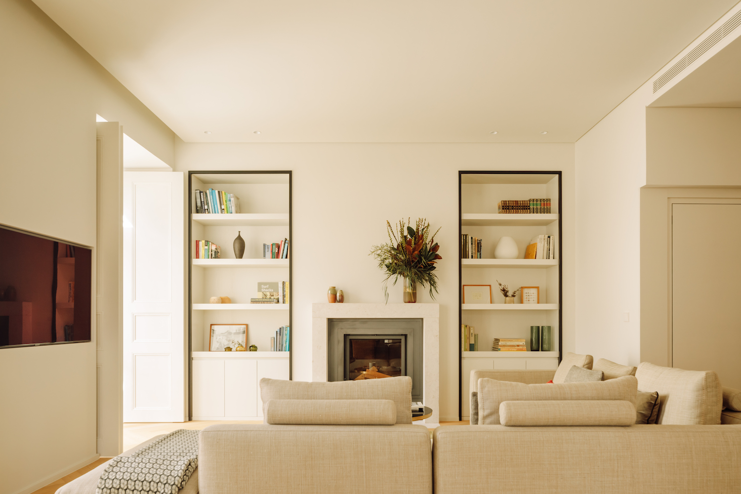 The client was looking to create an intimate, comfortable and elegant home with quality materials, simple lines and soft tones with some touches of accent colors. The house had been entirely decorated with new pieces of furniture and artwork. It was also important to create a dialogue between the interior of the house and the beautiful historical environment made of the viaduct and the Amoreiras garden.The collaboration with the client has been smooth all along and turned into a nice friendship.