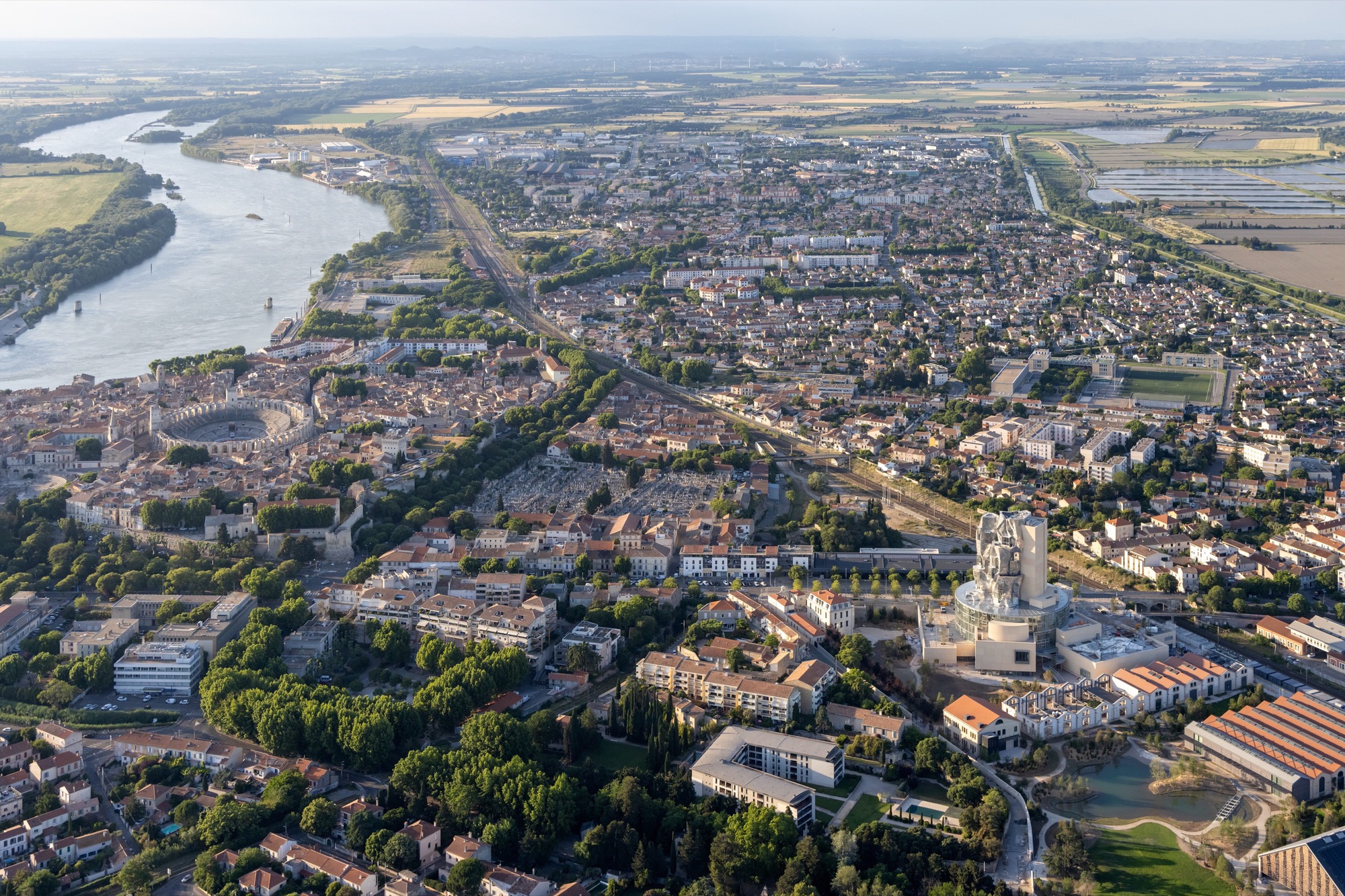 The centrepiece of LUMA Arles is The Tower designed by Los Angeles-based Canadian architect Frank Gehry, which houses exhibition galleries, project spaces, research and archive facilities, workshop and seminar rooms and a café.