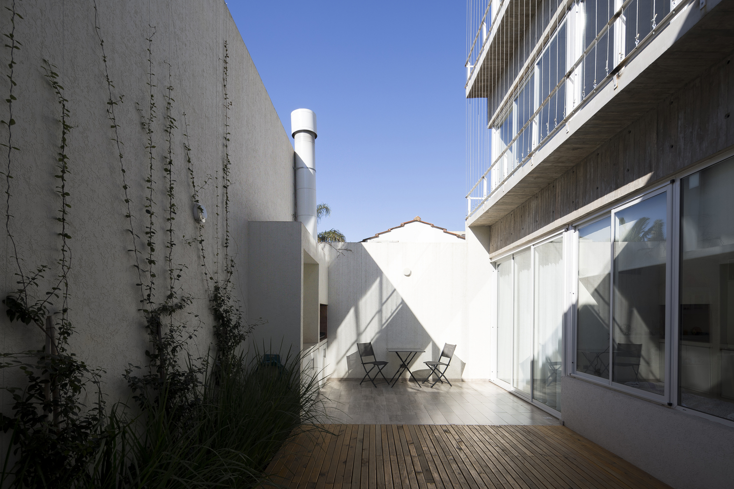 Azara 891 is a low-density multifamily building located on a plot of land between party walls in Lomas de Zamora, south of Buenos Aires Metropolitan area. On an empty lot of limited dimensions (8.66m x 19.52m), it is prioritizing the preservation of a large existing avocado tree, adjacent to the southern neighbor.