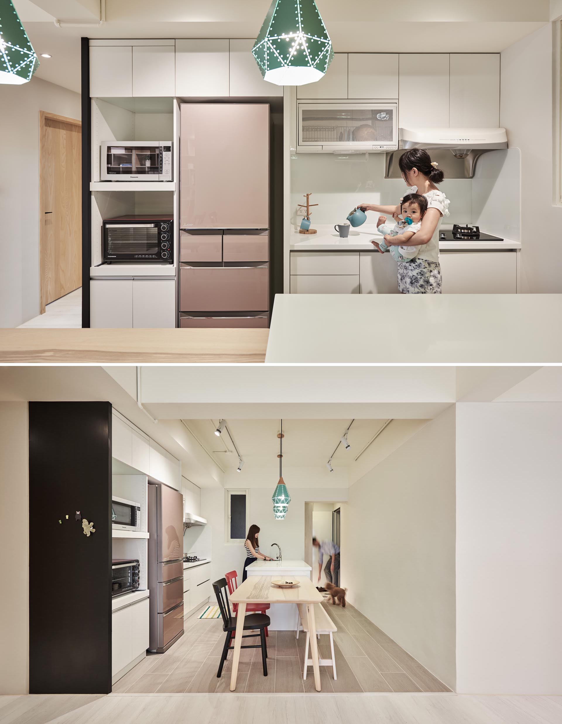 When designing the interior of this apartment in Taiwan, Life Creator Design included a multi-functional living space that can be used as both a living room and a home office.