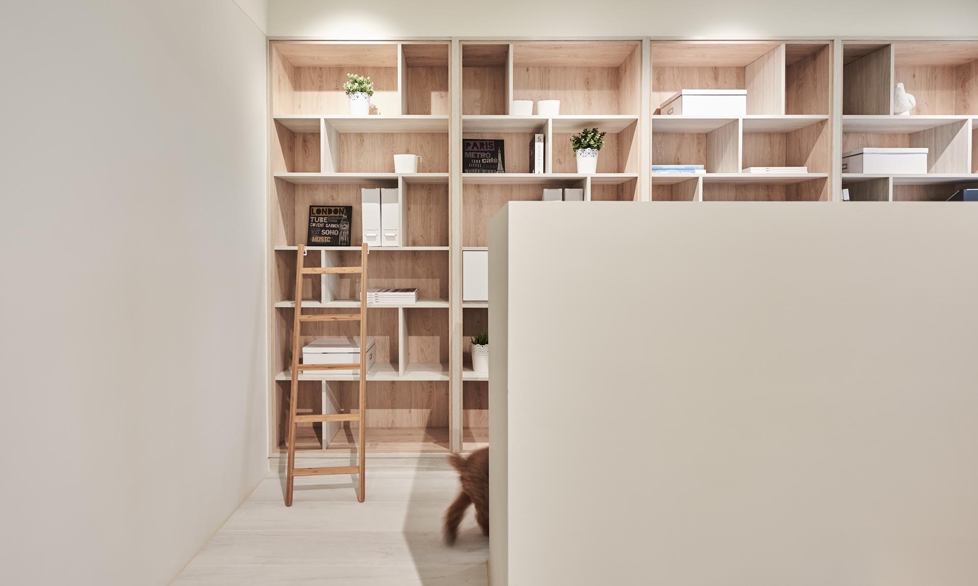 대만에 위치한 아파트 인테리어 디자인은 주거공간과 홈오피스 기능을 조화롭게 구성하는 것을 목표로 설정되었습니다. 열린 거실을 구분짓는 낮은 파티션을 경계로 쇼파와 TV가 위치한 거실과 업무용 책상과 캐비넷이 설치된 오피스공간으로 구성됩니다.