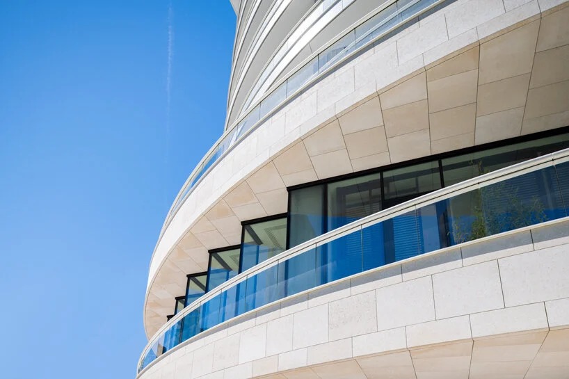 one park drive forms the centerpiece of ‘wood wharf’ — a new district of canary wharf. for the exterior, herzog & de meuron wanted to distinguish the new tower from its orthogonal, office block neighbors and express more a human scale with a rhythmic elevational treatment made up of stepped balconies and terraces.