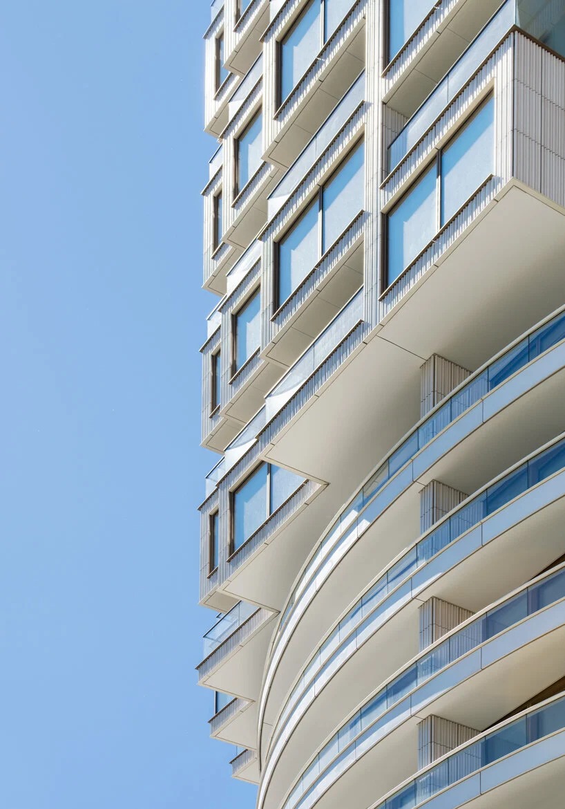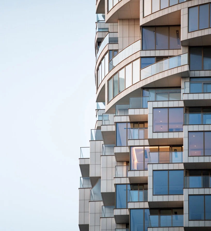 the new building comprises a total of 483 luxury apartments as well as a range of on-site amenities. the program is organized over three sections: spacious loft style apartments on floors 02-09; cluster residences layered to maximize space in the mid-section; and large bay units toward the top of the building. there are also three apartments known as the ‘level 32 sky lofts’ on the 32nd floor designed by bowler james brindley, who has also created the interior of the loft style apartments. the cluster and bay apartments are designed by goddard littlefair.