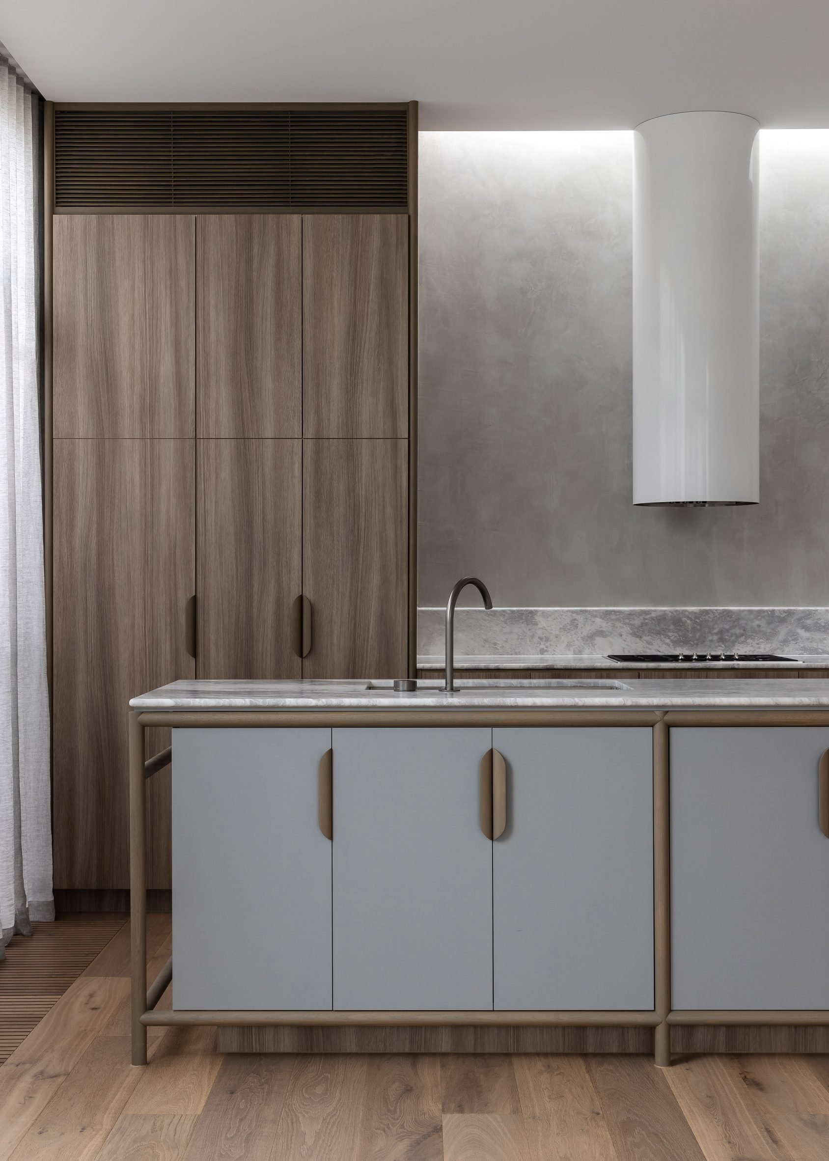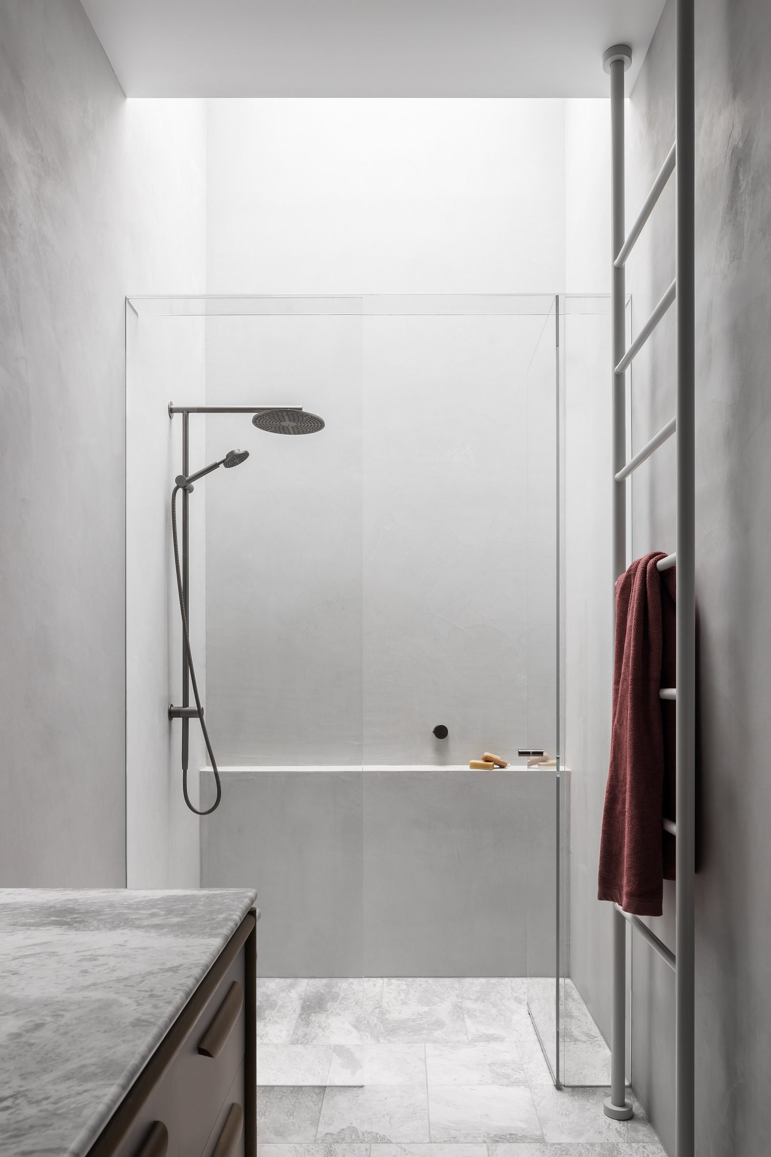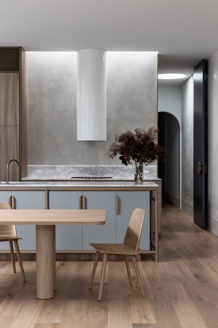 The space is fronted by expansive three-by-three-metre glass doors that had to be lifted onto the site by crane.