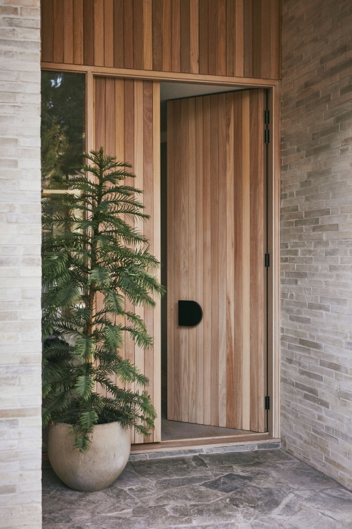 Built by Marcus Builders together with carpentry by Planera, the home has been carefully and laboriously crafted by its makers. Acting as an extension of the principles established within, the surrounding landscape design by Le Page Design further adds curious elements and combines species that feel deliberately fitting yet differing from the surrounding neighbours. In the balancing of the familiar and influences from afar, the resulting home challenges what the suburban setting should and can be. The use of stone, timber and handmade bricks further adds to the story of texture and warmth, enveloping the owners and their guests both when inside and when amongst the garden.