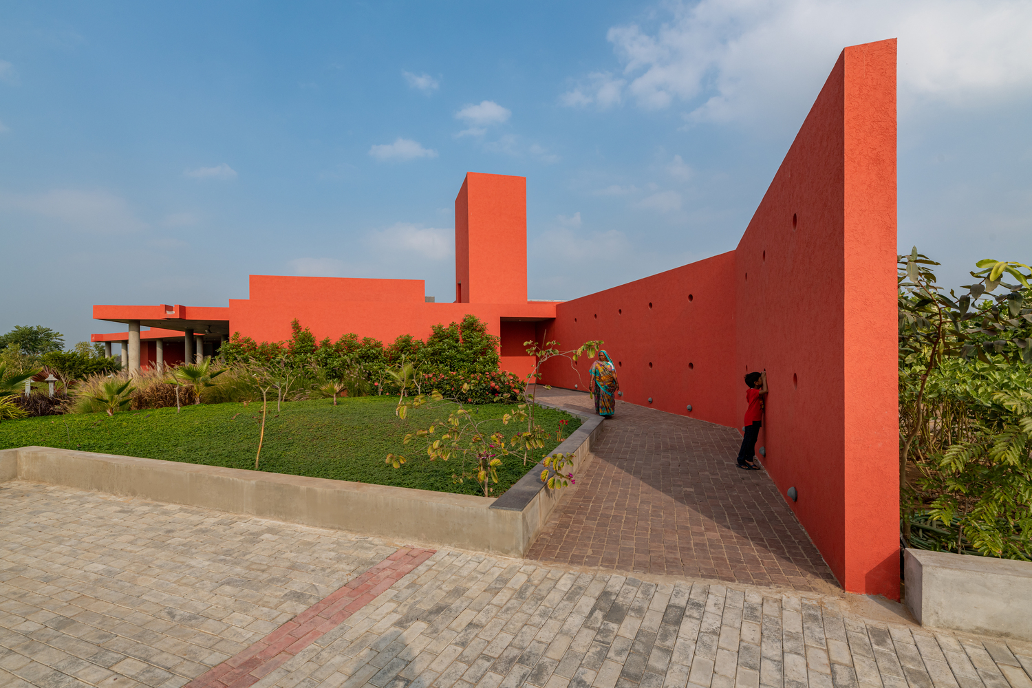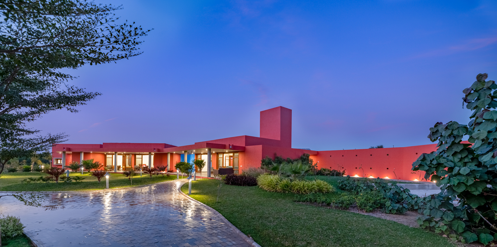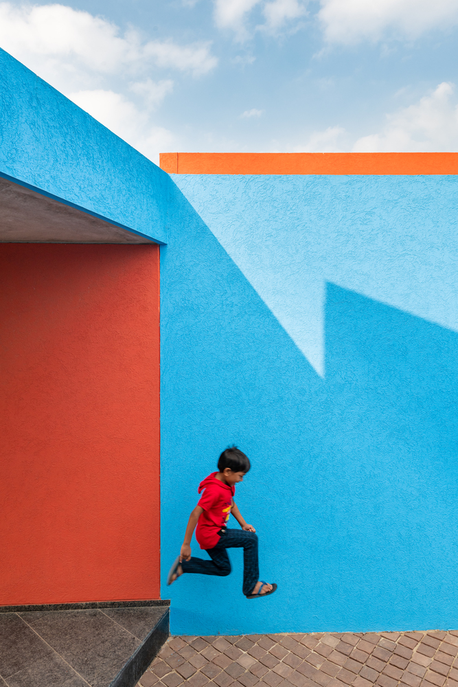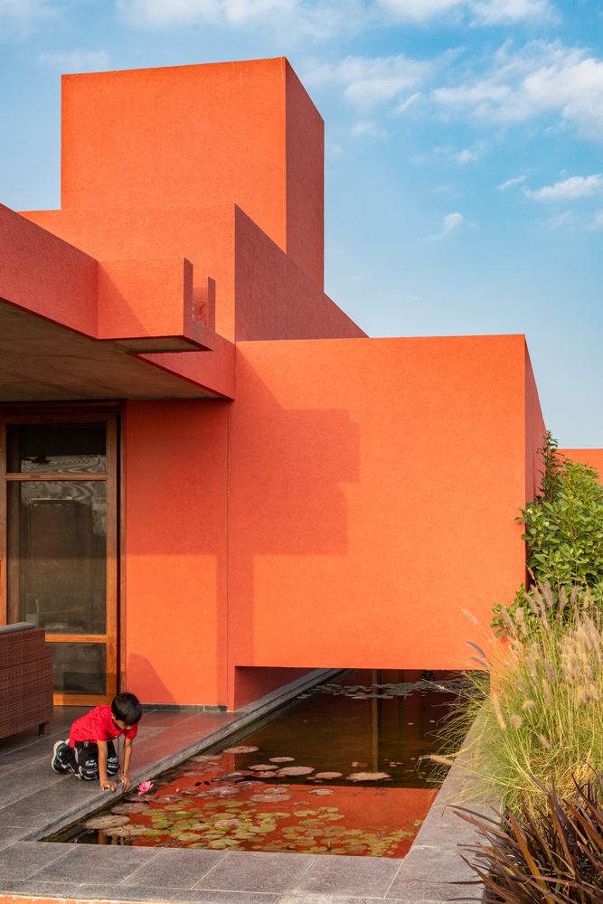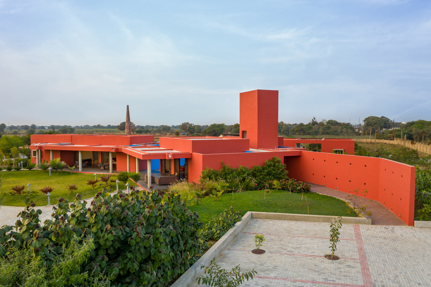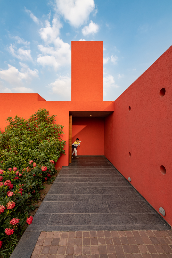 Located on the outskirts of Mehsana, this farmhouse was built for the clients who had just one requirement - a three-bedroom house. Hence the architects were given complete freedom to explore various materials, colors, and building techniques. The house was designed based on the principles of passive design. Maximizing the natural flow of air and daylight was necessary for the hot and dry climate of Gujarat located in western part of India. The transition of open and built spaces highlights the use of colors and the play of light and shadows throughout the house