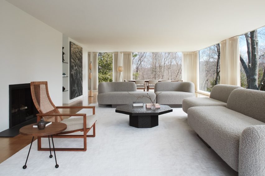 Magdalena Keck employs "warm minimalism" for interiors of glazed house in Hudson Valley