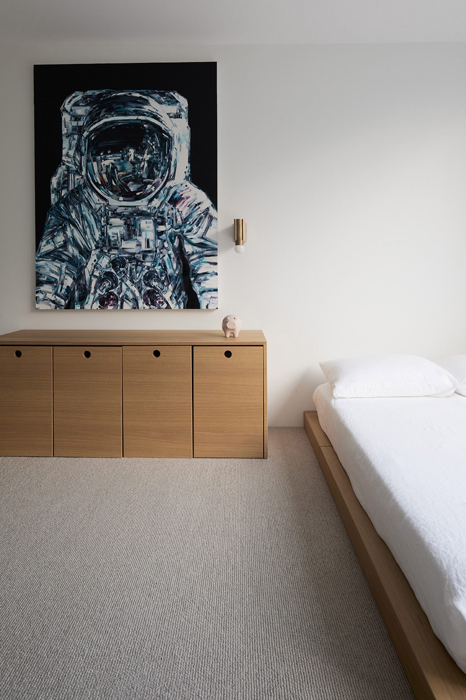 Drawing upon her penchant for "warm minimalism", Keck chose a range of pieces that complemented the architecture and the existing finishes, including wood flooring and vanilla-hued window drapes.