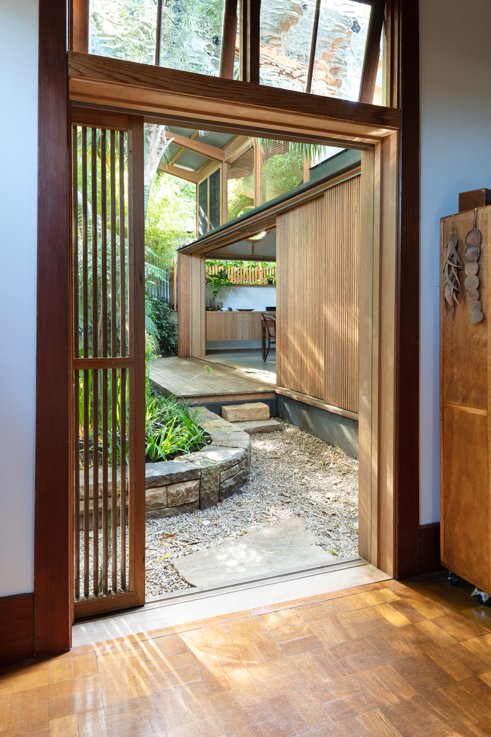 In its positioning across from the north of Sydney CDB, Tsubo Niwa is built by Lighthouse Building and is anchored as a focal point with landscape design by Even Spaces. Evolving from the original four bedroom cottage form, the original use of timber is reinterpreted in a contemporary way while being respectful in scale and connection between old and new. Under the new skillion roof form, the new spaces gather as interconnected zones that open into one another and the outside. As a counter to the existing home that was void of light and felt inwardly focused, the proposal aimed to balance the original home’s feel with new light and openness.