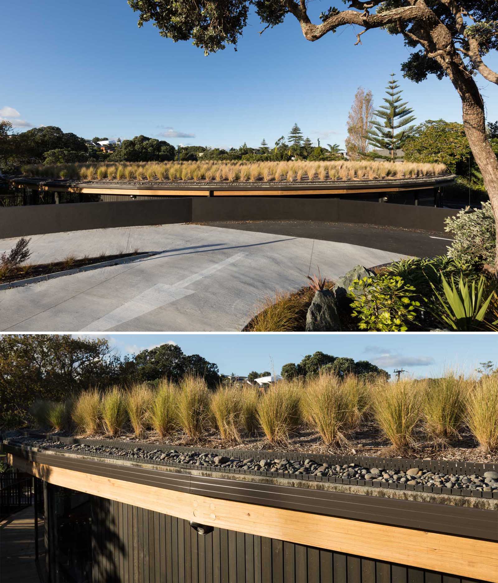 The green roof reduces rainwater runoff by over 50% from the roof. All rainwater from the roof is discharged to the ground below the building, where it is cleaned by bacteria in the soil and gravel filters and eventually filtered back to the stream, while extensive landscaping around the building and on the roof with native plants enhances biodiversity.