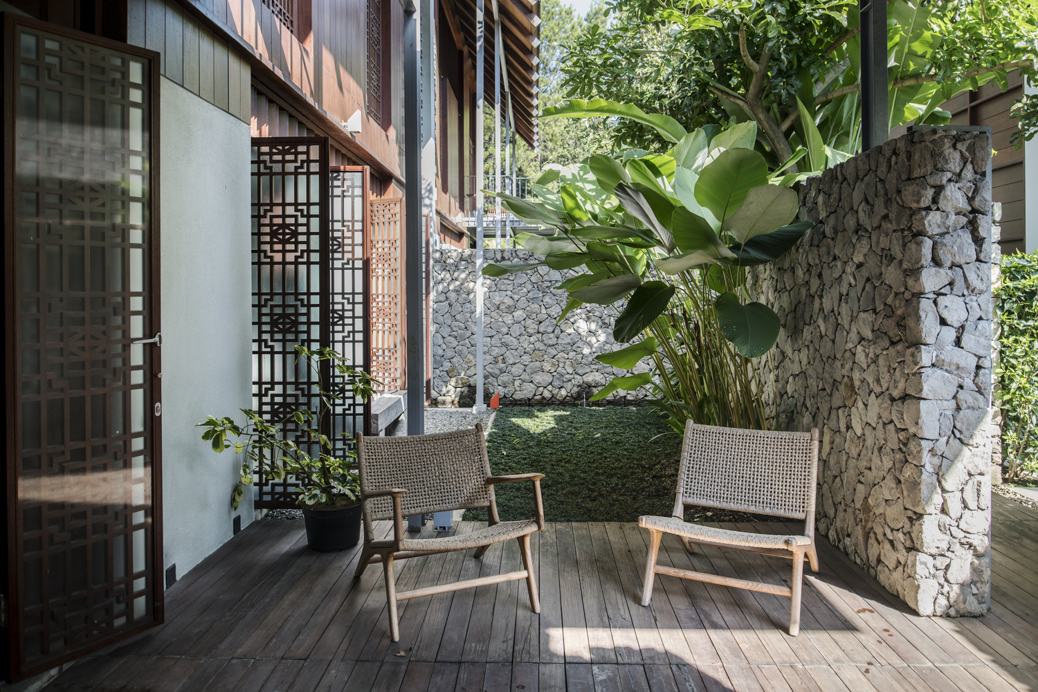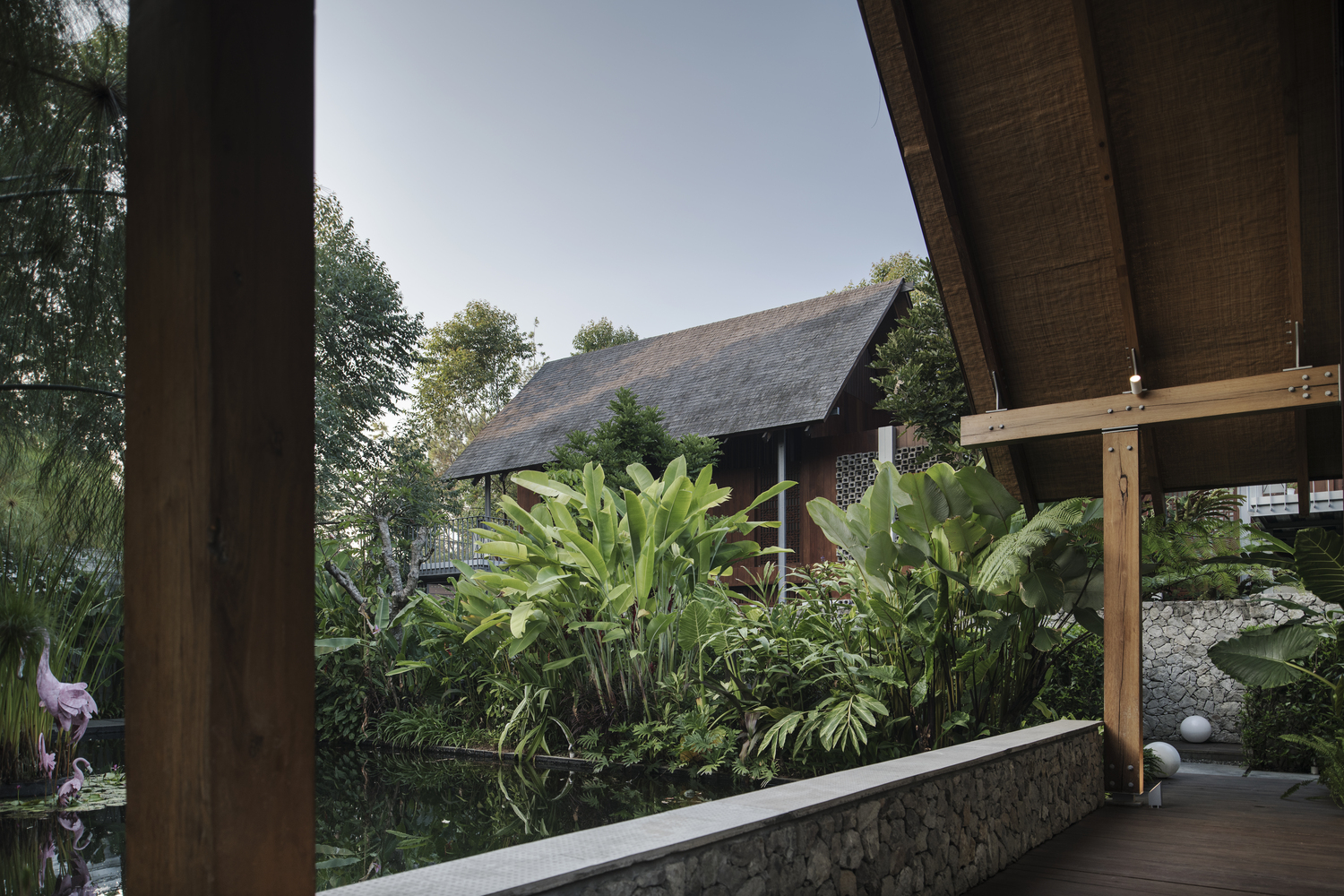 Featuring four guest houses and two spacious meeting halls overlooking a giant fishpond, the Ton Villas were designed for a client who likes to entertain large groups of people. The 3,500sqm property also features a large dining area and a lounge where guests can get together and mingle through games and music.
