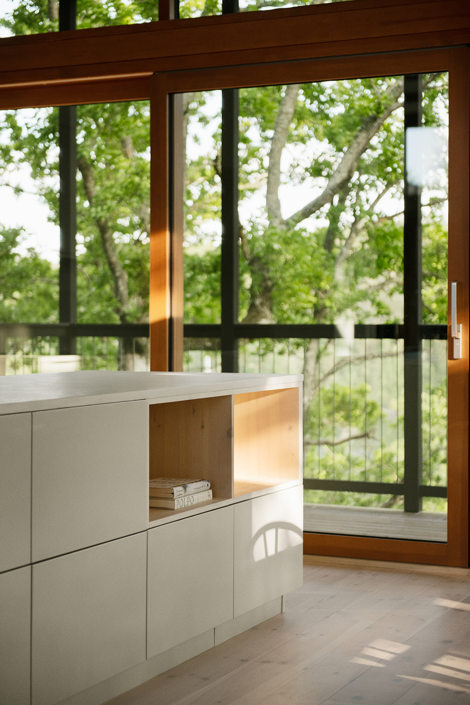 숲속 한가운데 위치한 미니멀 주택은 인공적인 건축과 자연이 동기화 되는 쉬운 길을 보여준다. 자연적인 재료; 목재의 사용, 주어진 대지환경에 순응하는 건축, 외부로 확장되는 열린 내부공간을 통해 동기화를 보여준다.