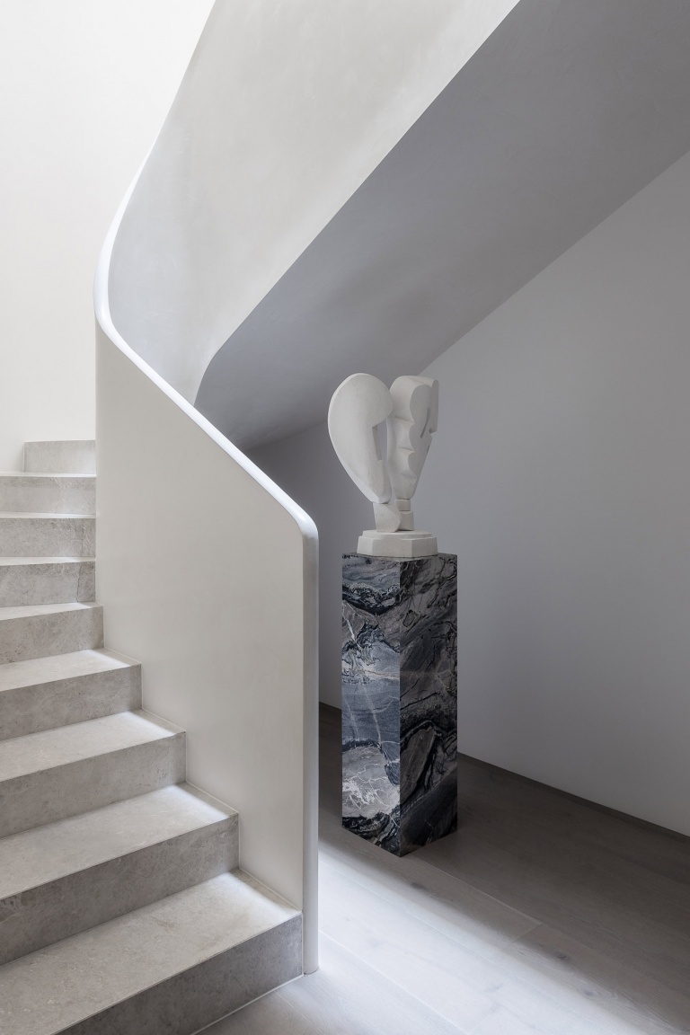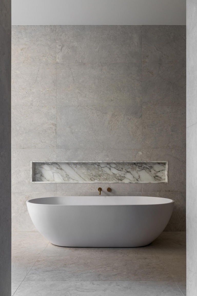 Split across four levels to navigate the expansive, sloping site, the layout is oriented by a central axis and vertical stairwell, establishing an intuitive and rhythmic journey throughout. The ambition to celebrate the journey through the home became a driving principle, guiding a nuanced approach to the sequencing of spaces.
