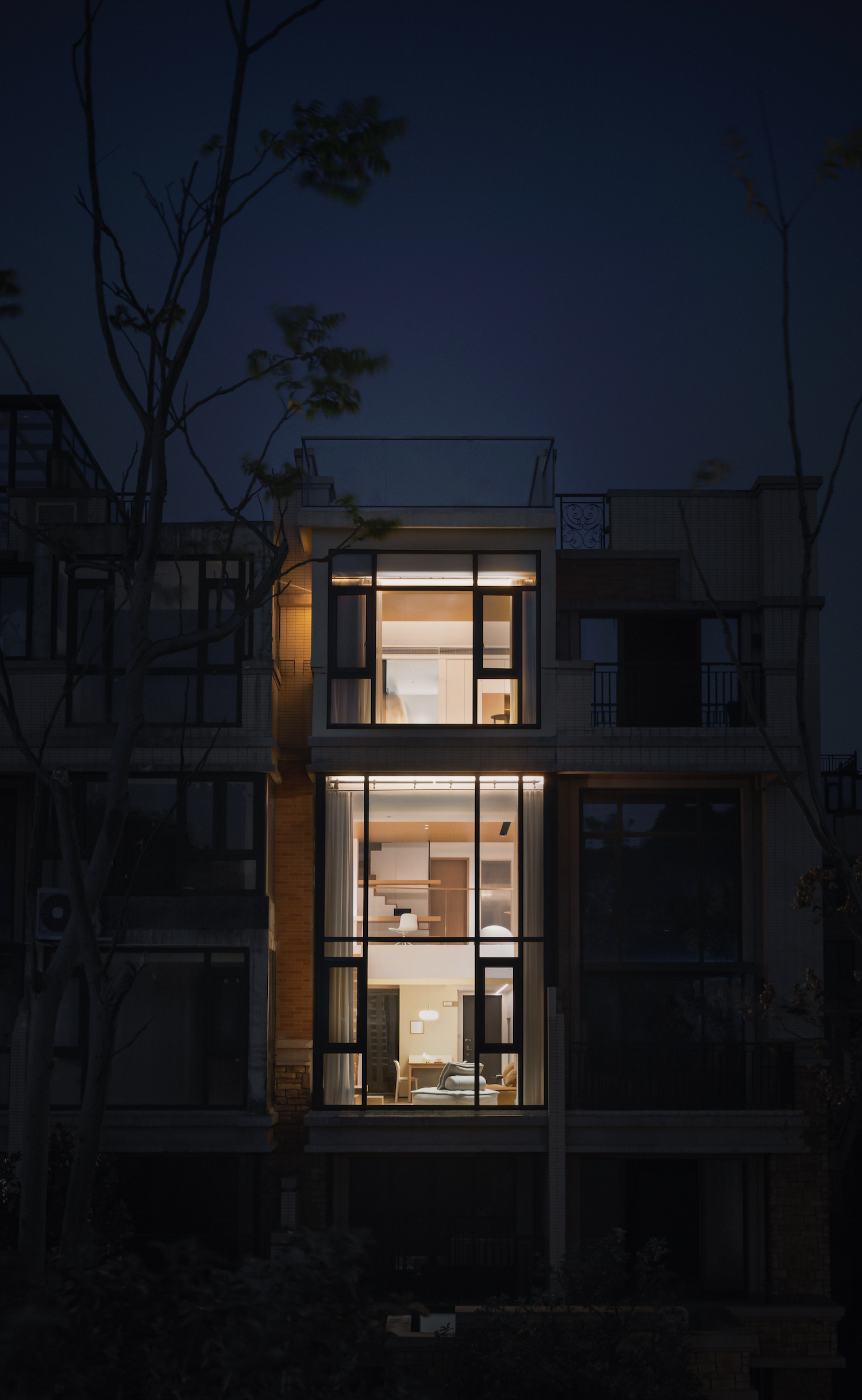 Jingyu Space Research Laboratory에서 설계한 Triplex Villa는 중국 후난성에 위치한 미니멀 하우스 이다. 이번 작업의 방향은 거주자의 다양한 요구조건과 개선방향을 담기 위해, 60제곱미터 공간의 효과적인 기능성에 초점을 두었다. 남편이 열린 공간 속에 편안한 거주공간을 선호하는 반면, 아내는 디테일과 단순함 속에서도 유연한 스타일 추구한다.