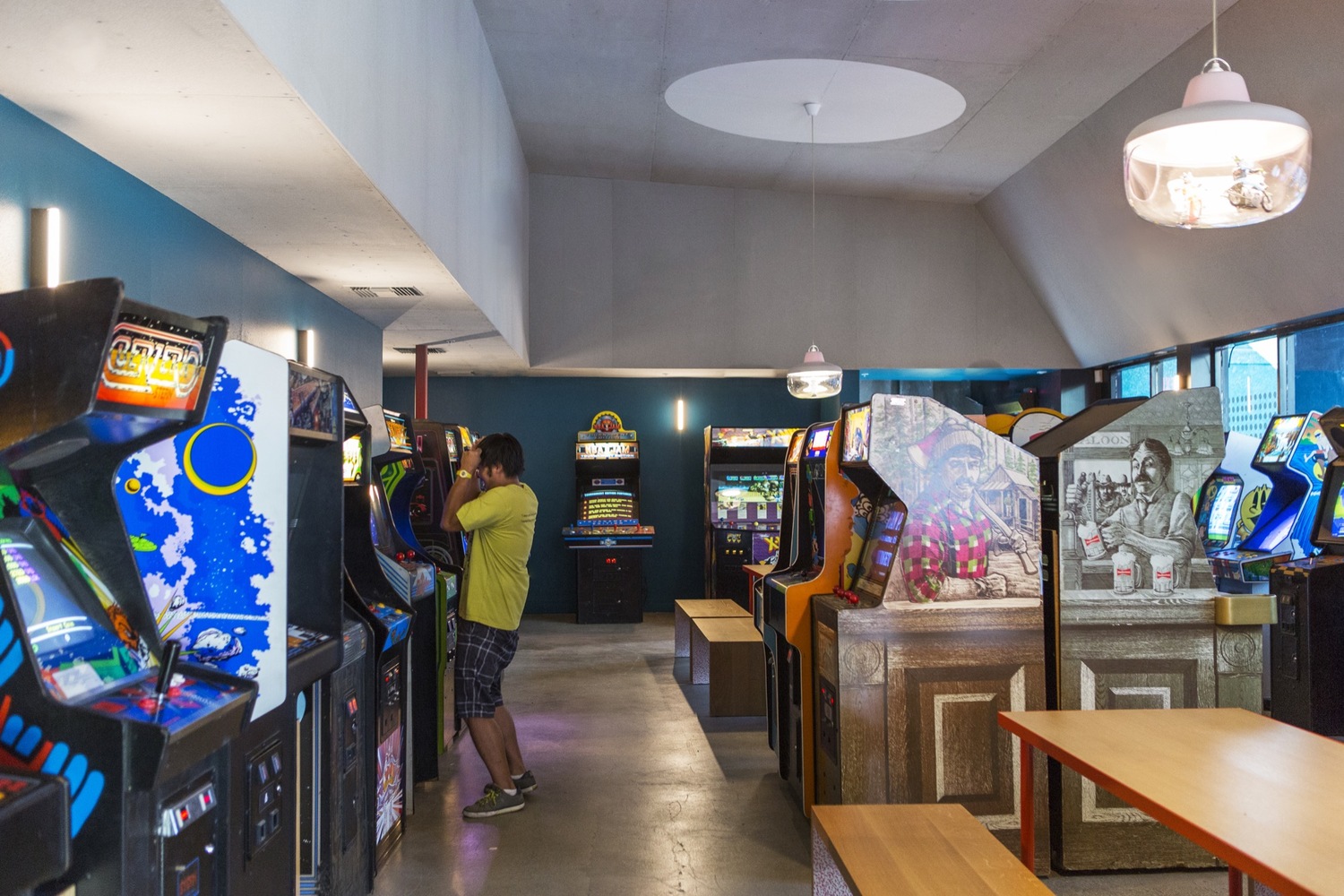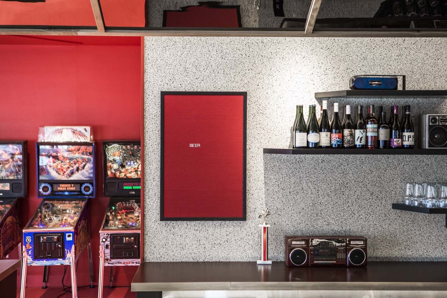 A full service restaurant and bar with a vintage arcade. Button Mash is intended to be an integral and vibrant neighborhood hub for all ages with a design that showcases a careful curation of arcade games and stellar creative cuisine.
