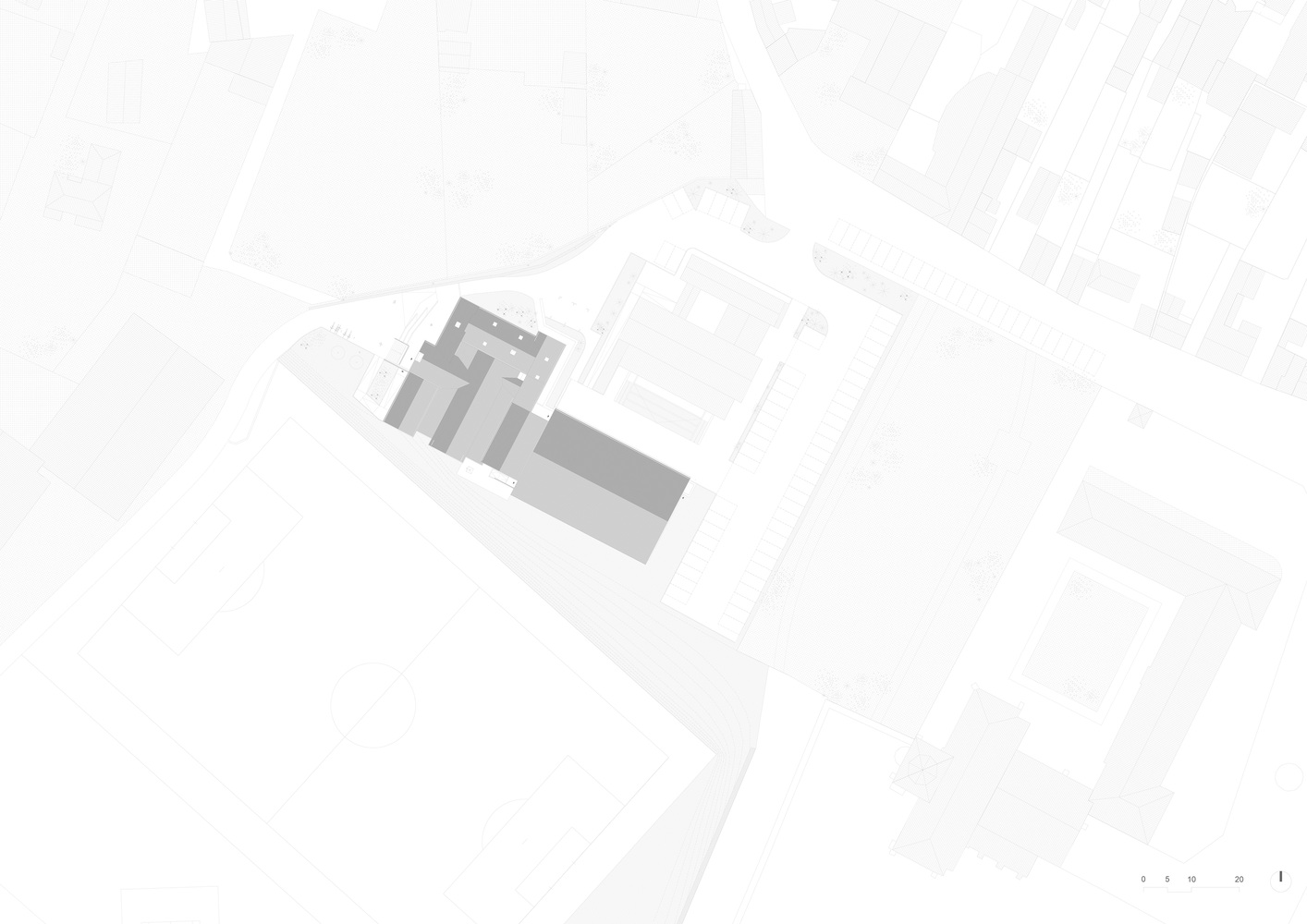 The full renovation and the extension of the swimming pool imposed the implementation of a proliferating architecture, this made it possible to associate the construction of complementary spaces in coherence with the initial heterogeneity. The existing structure is looked at objectively and in its capacity to offer capable volumes already built while seeking through its transformation to offer the coherence of a certain abstraction affirming the unitary status of new public equipment on the scale of the surrounding community.