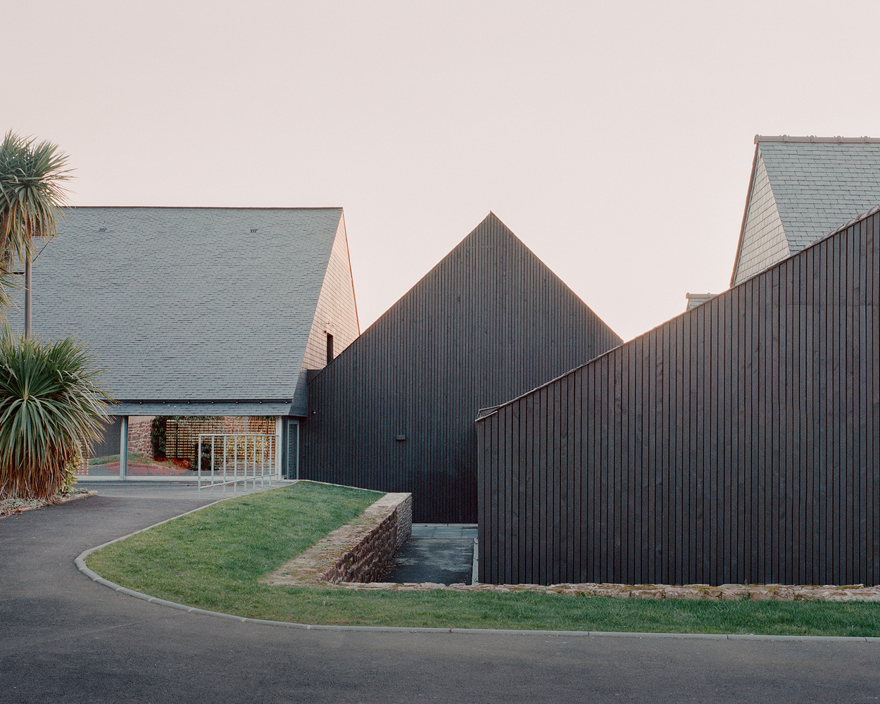 The new pool is integrated into the continuity of the existing one by offering the abstraction of a large volume of slates, leaving the pools' surrounds very open to the landscape.