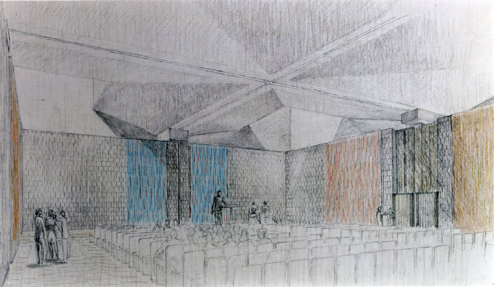 The spatial configuration of the church, like many of Kahn’s works, was defined by a series of interconnected geometric forms. The central worship space is octagonal, surrounded by triangular spaces accommodating the ancillary functions of the church, such as the choir and the organ. The inherent flexibility of this design allowed the central space to be utilized for a variety of congregational needs, showcasing Kahn’s keen understanding of multi-functional spaces.