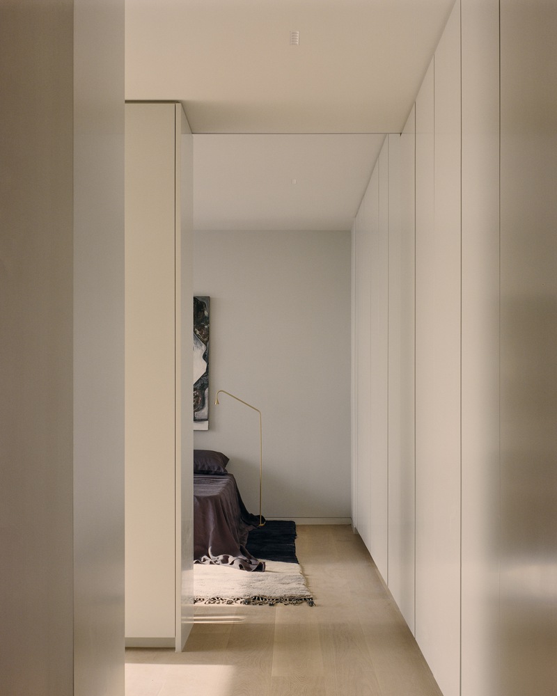 The apartment planning process was underpinned by biophilic design principles and the desire to provide each home with an axis to external views and ventilation. The resulting ambiance is dramatic. As you enter each apartment and journey through each room, the omnipresent natural light offers a sense of calming expansiveness. The building steps back, and the interior planning works in tandem with the external grid, affording many of the secondary spaces Juliette balconies. By having this strong relationship between the exterior and the internal spaces, the interior spaces speak for themselves and take center stage with framed views beyond.