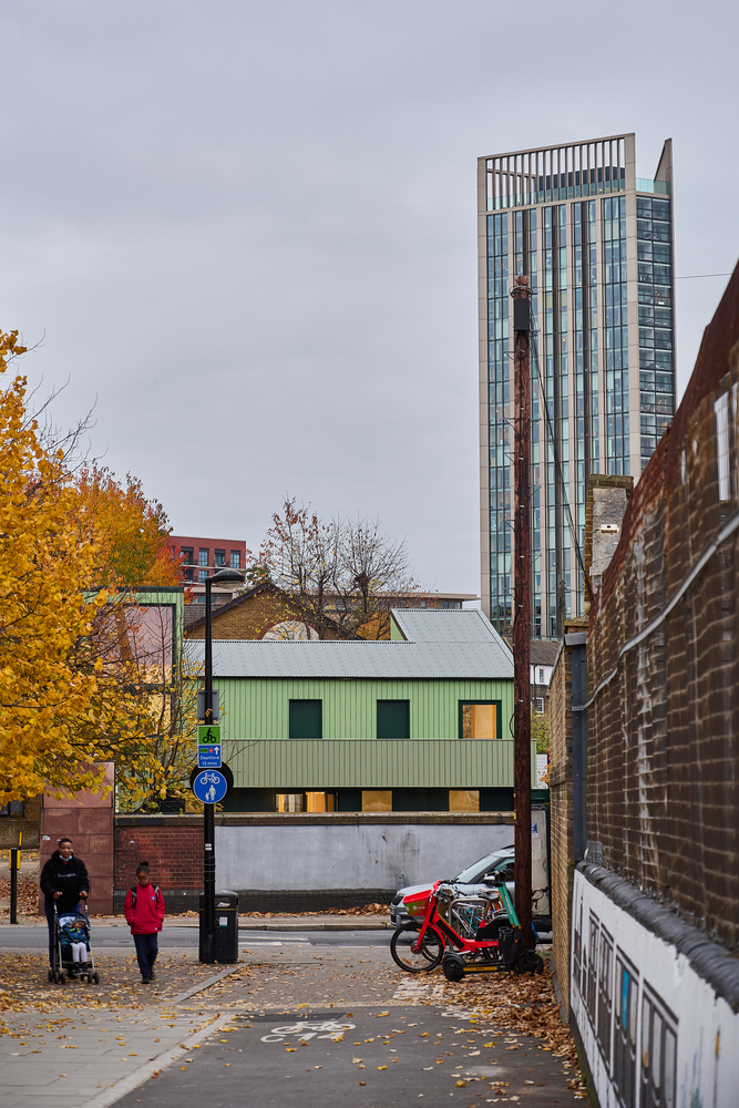 The Hithe is the practice’s second project developed with Meanwhile Space, following the success of Granby Space, a 350m2 short term refurbishment on Lower Marsh, Waterloo, which has closed after five years. The Hithe represents a new departure for Meanwhile Space, as a new-build facility designed to be relocated. In this, its first iteration, it represents a new piece of social infrastructure for Rotherhithe: a community hub in a neighborhood undergoing rapid change.