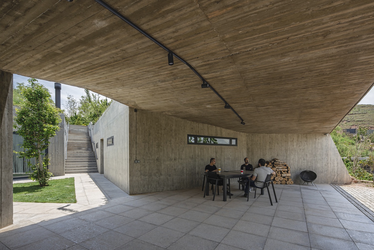 In this Residence, people are allowed to experience another way of collective life that enables them to face more of the nature that has been rejected in the city. Therefore, three separate 70 square meter caves have been dug around a hole in the center of the ground that provides for this accommodation camp's needs.