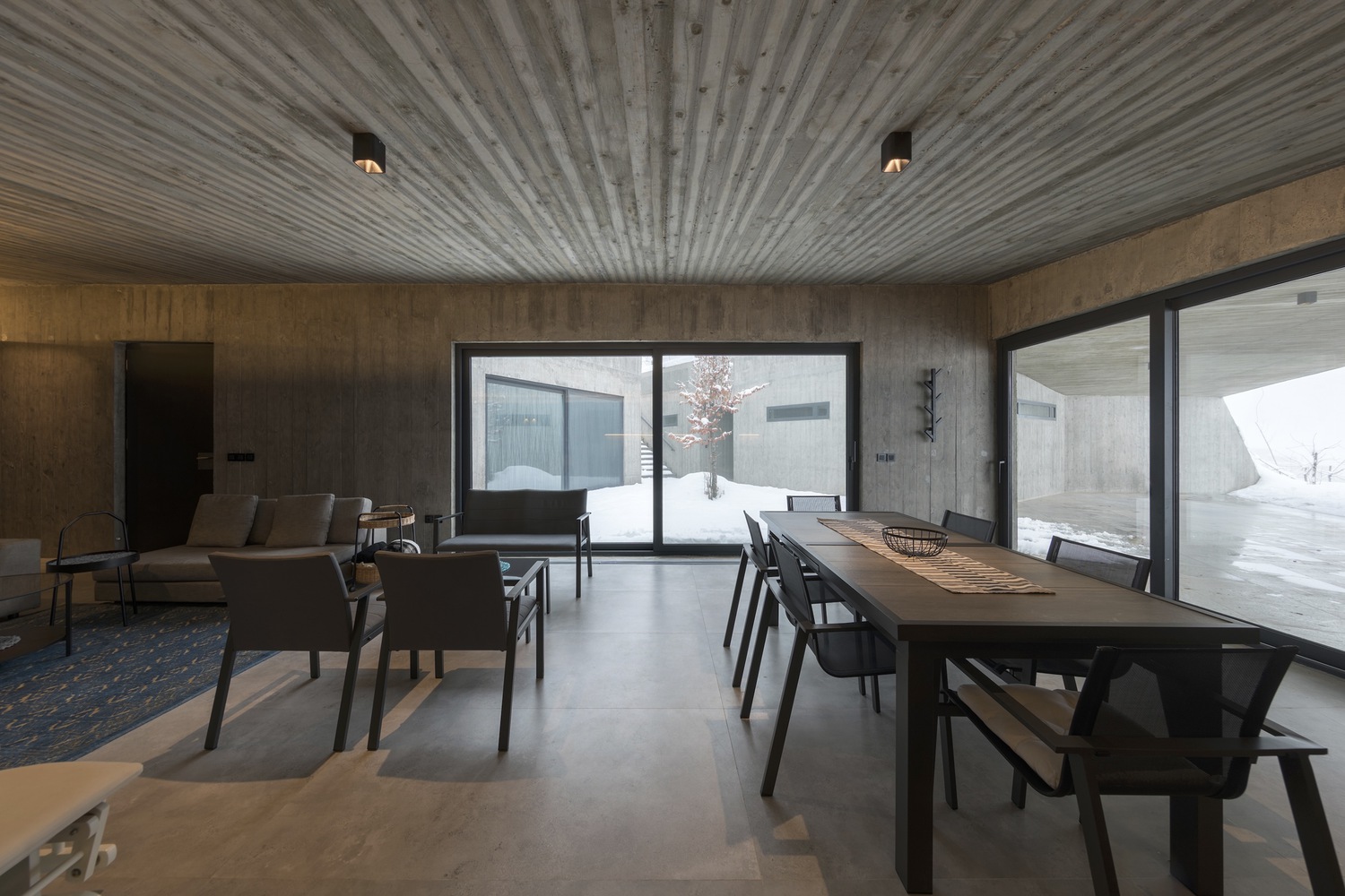 3개의 동굴은 각각 침실, 거실, 수영장과 유틸리티로 구성된다. 건물과 건물로 이동하는 사이에는 자연과 호흡하는 독립적인 공간이 존재한다. 공용공간의 최대장점은 채광과 조망을 적극적으로 확보하는 것이다. 반대로 마당 반대편에 있는 침실은 외부로 드러나지 않도록 최소한의 노출로 구현한다.