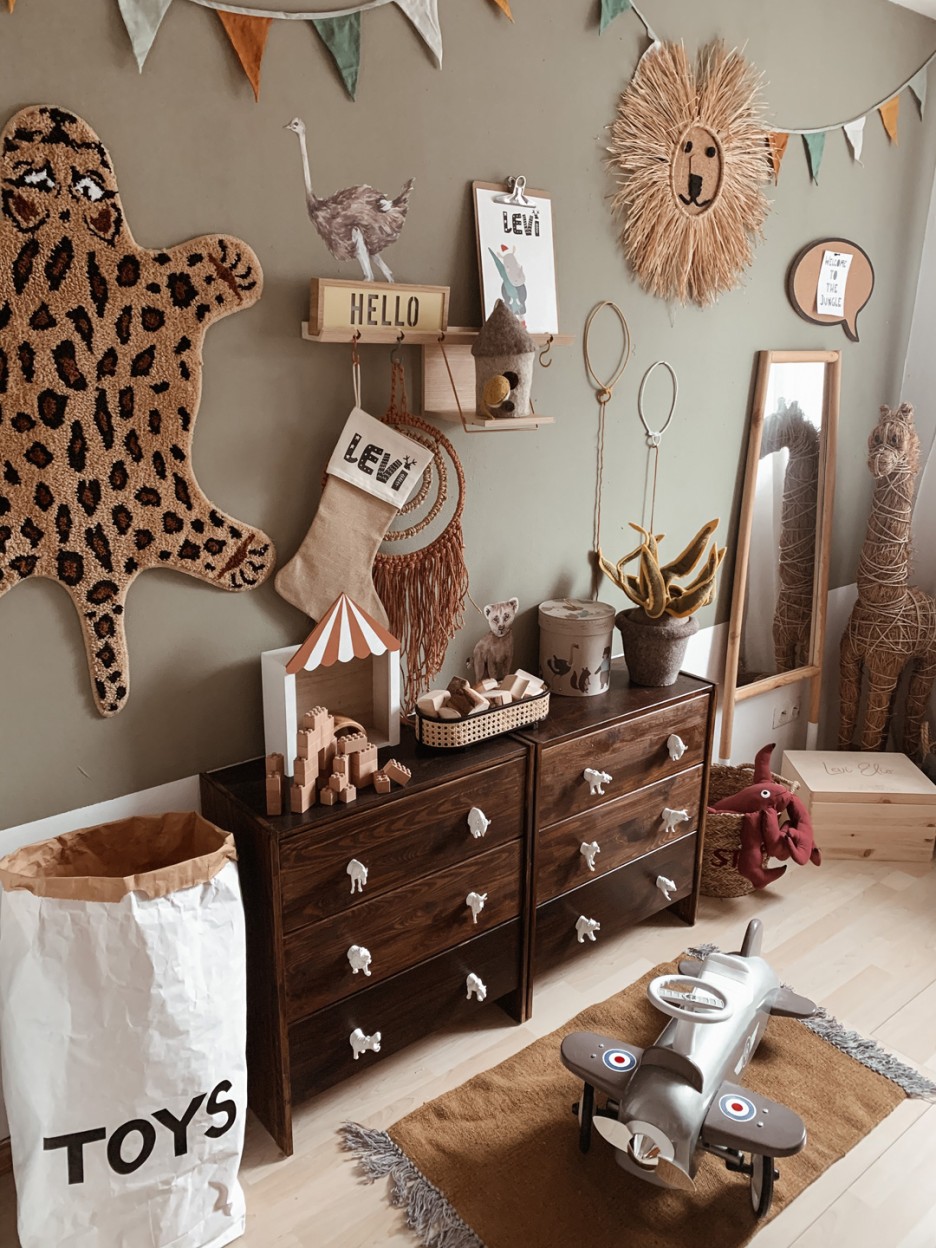 Stepping into two-and-a-half-year old Levi’s bedroom is like venturing into a vast and magical wilderness. It’s busy but beautiful. A hive of animal activity with layer upon layer of intricate detail. It’s childlike and innocent yet has an air of sophistication that wouldn’t be out of place for an older inhabitant.