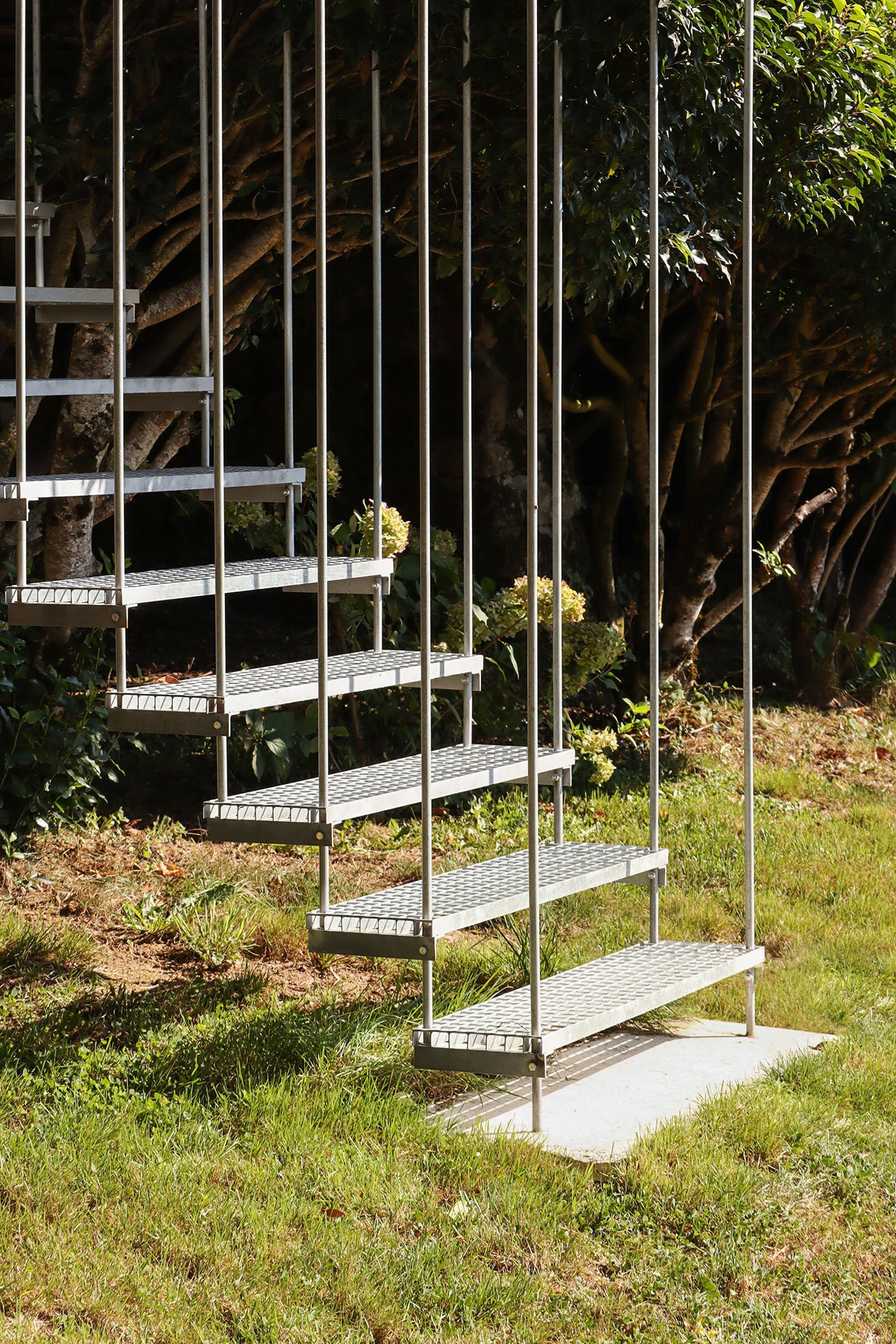 Structural beams, floor decking and door panels made from galvanised steel, a material chosen for its visual lightness and structural efficiency, add industrial touches while the use of Okoumé timber, an African wood with a warm, mahogany-like, red brown appearance, imbues the spaces with warmness, also complementing the exposed masonry wall construction.