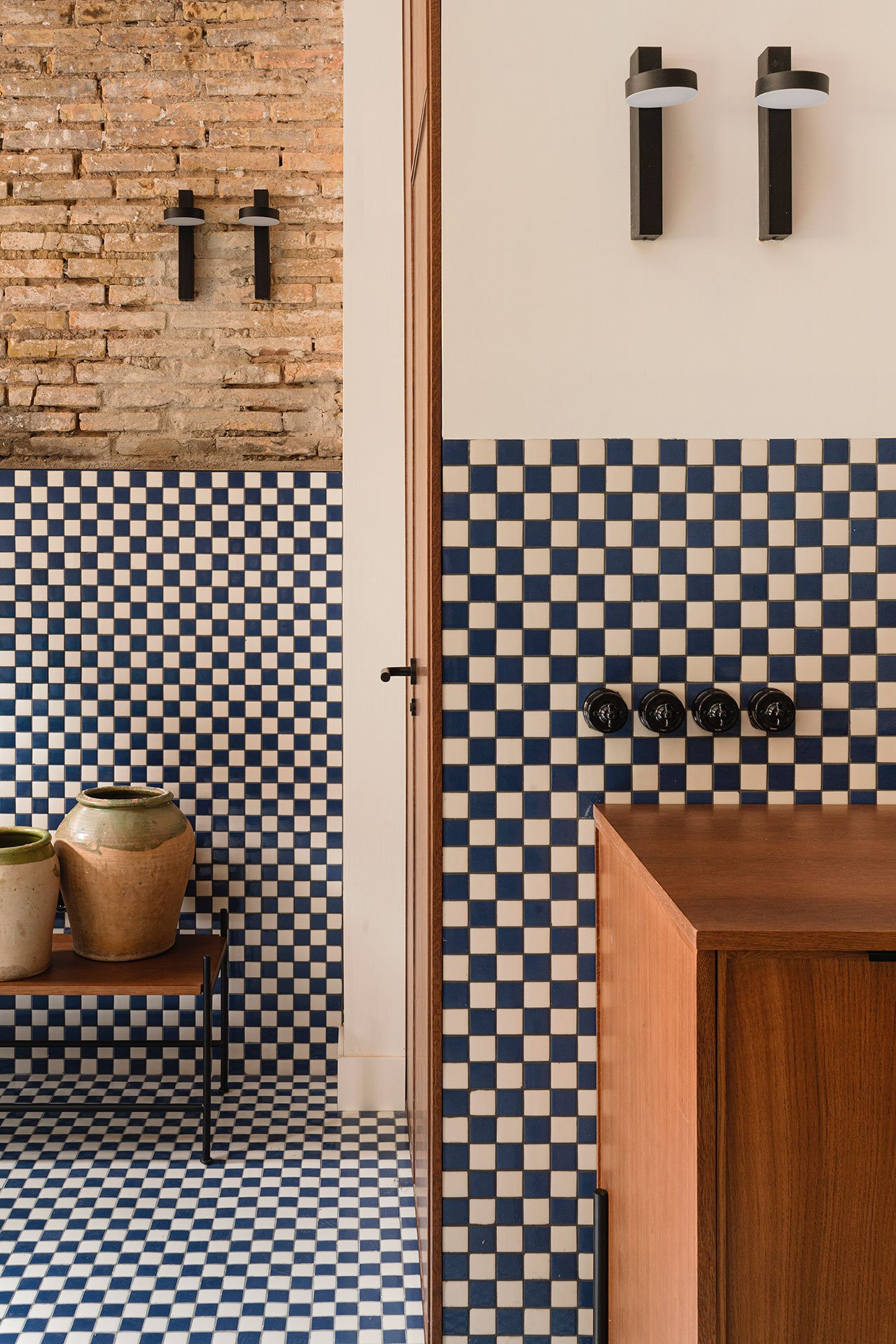Commissioned to renovate a compact townhouse in Valencia’s old fishermen's quarter, El Cabanyal, architects María Daroz and David Puerta from the local practice Viruta Lab boldly animated the property’s architectural heritage with a contemporary design language inspired by the neighbourhood’s vibrantly ornamented facades. Original brickwork and plasterwork, playfully juxtaposed with white and blue tiling in a checkerboard pattern and minimalist timber joinery, create a modern living environment that nevertheless conveys the building’s storied history and evokes its sentimental value, as it was formerly the residence of the owner’s grandparents.