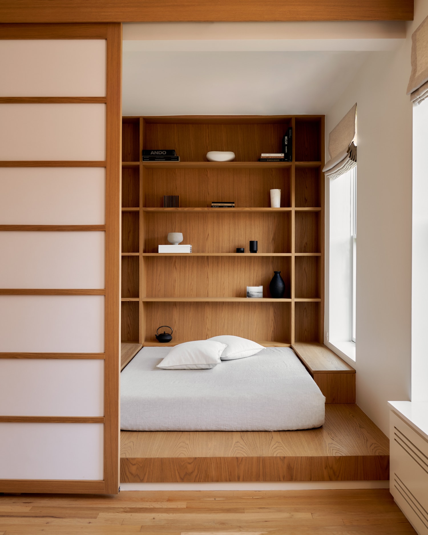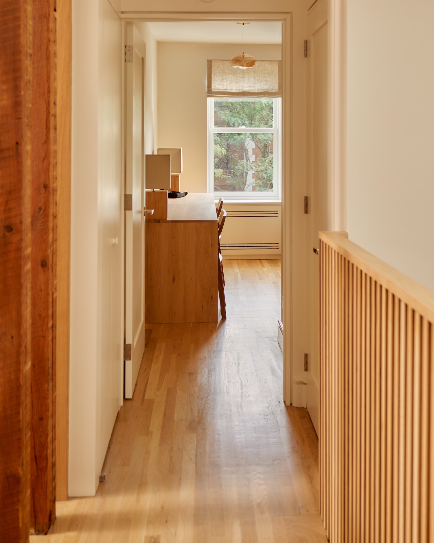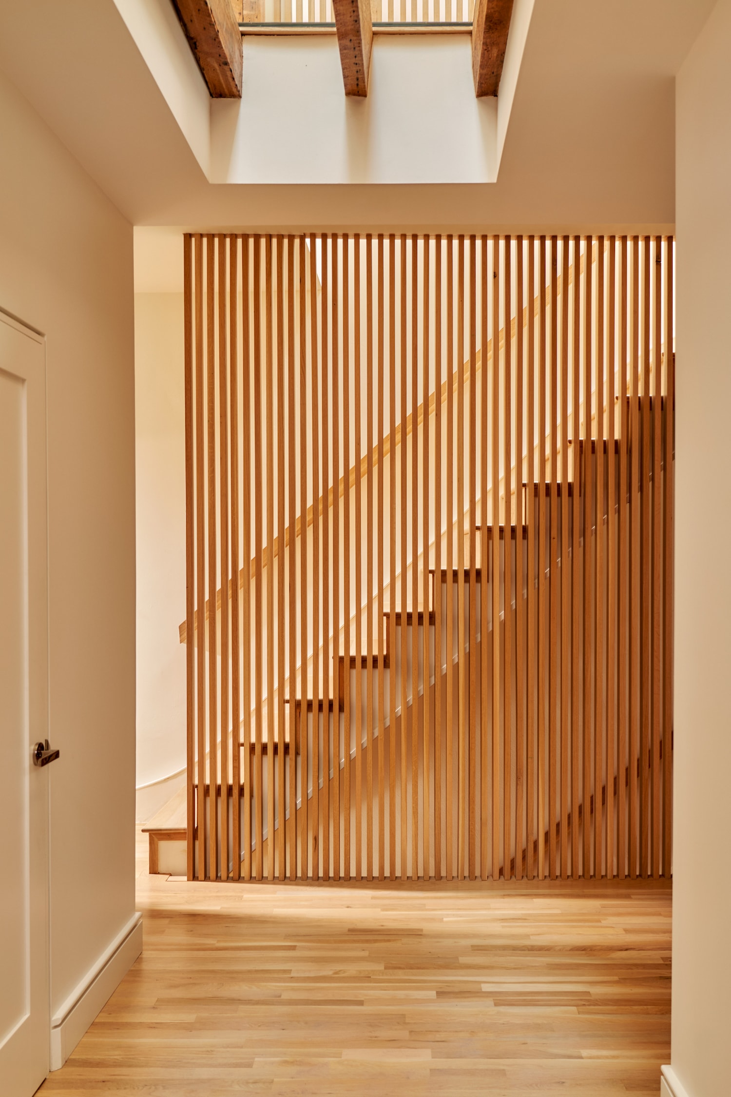 Cobble Hill은 Claire Hung Design이 디자인한 뉴욕 브루클린에 위치한 미니멀리스트 브라운스톤입니다. Hung은 Japandi 스타일을 수용하여 일본에서 영감을 받은 미학을 작품에 접목했습니다. 나무, 특히 참나무의 고요한 특성에 끌린 주택 소유자는 깨끗하고 반복적인 선에 나무를 사용하는 것을 선호했습니다. 이 비전은 그들이 젊었을 때 존경했던 나무 중심의 스위스 샬레와 대조되는 일본 목공예에 대한 친밀감과 단순성에 의해 형성되었습니다. 디자인 프로세스는 복잡한 목공 작업으로 인해 어려움을 겪었고 2년에 걸친 프로젝트로 마무리되었습니다. 목공 작업을 위해 Hung이 선택한 유럽산 오크 베니어판은 베니어 숍과 함께 꼼꼼하게 계획되어 공간을 압도하지 않으면서도 나무의 독특한 패턴이 강조되었습니다. translate by DeepL