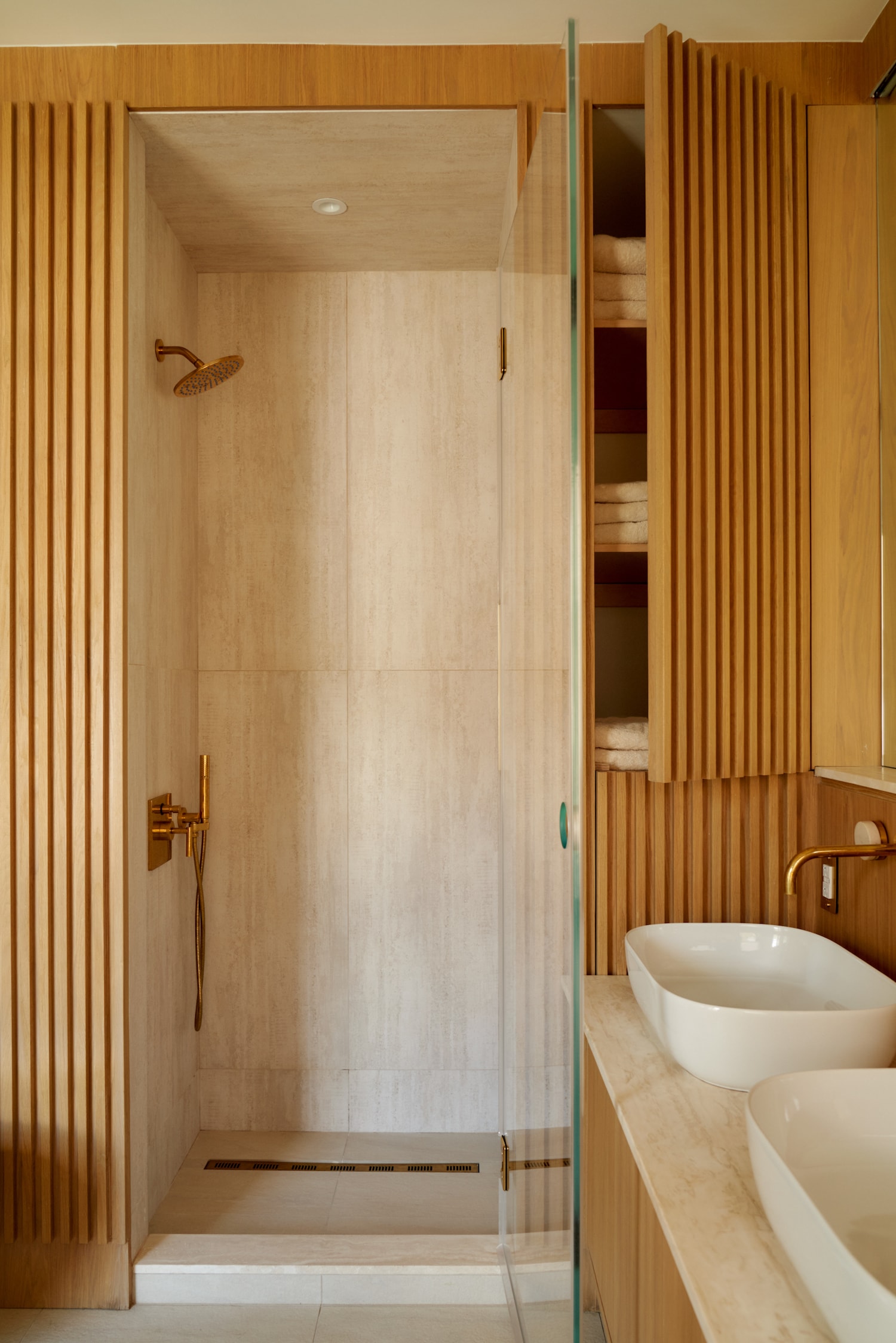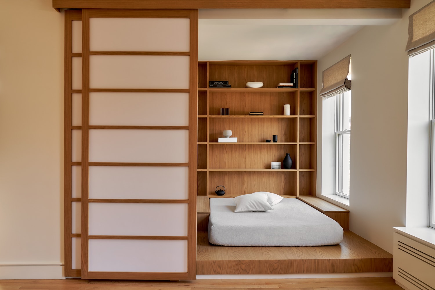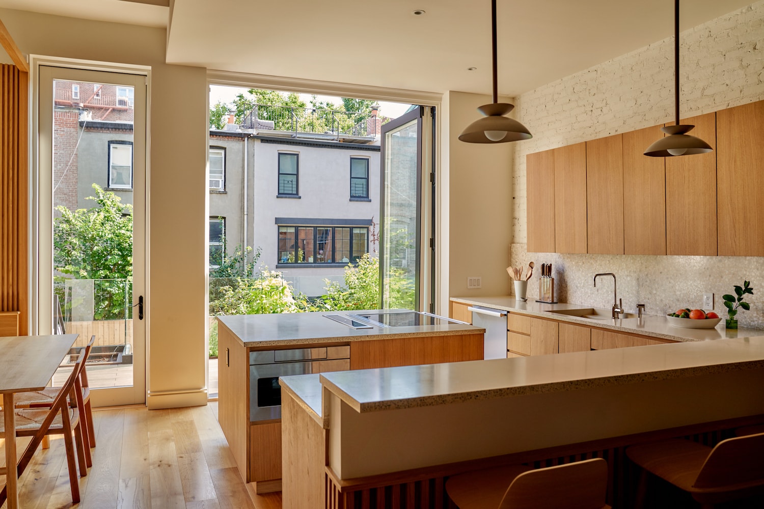 Cobble Hill은 Claire Hung Design이 디자인한 뉴욕 브루클린에 위치한 미니멀리스트 브라운스톤입니다. Hung은 Japandi 스타일을 수용하여 일본에서 영감을 받은 미학을 작품에 접목했습니다. 나무, 특히 참나무의 고요한 특성에 끌린 주택 소유자는 깨끗하고 반복적인 선에 나무를 사용하는 것을 선호했습니다. 이 비전은 그들이 젊었을 때 존경했던 나무 중심의 스위스 샬레와 대조되는 일본 목공예에 대한 친밀감과 단순성에 의해 형성되었습니다. 디자인 프로세스는 복잡한 목공 작업으로 인해 어려움을 겪었고 2년에 걸친 프로젝트로 마무리되었습니다. 목공 작업을 위해 Hung이 선택한 유럽산 오크 베니어판은 베니어 숍과 함께 꼼꼼하게 계획되어 공간을 압도하지 않으면서도 나무의 독특한 패턴이 강조되었습니다. translate by DeepL