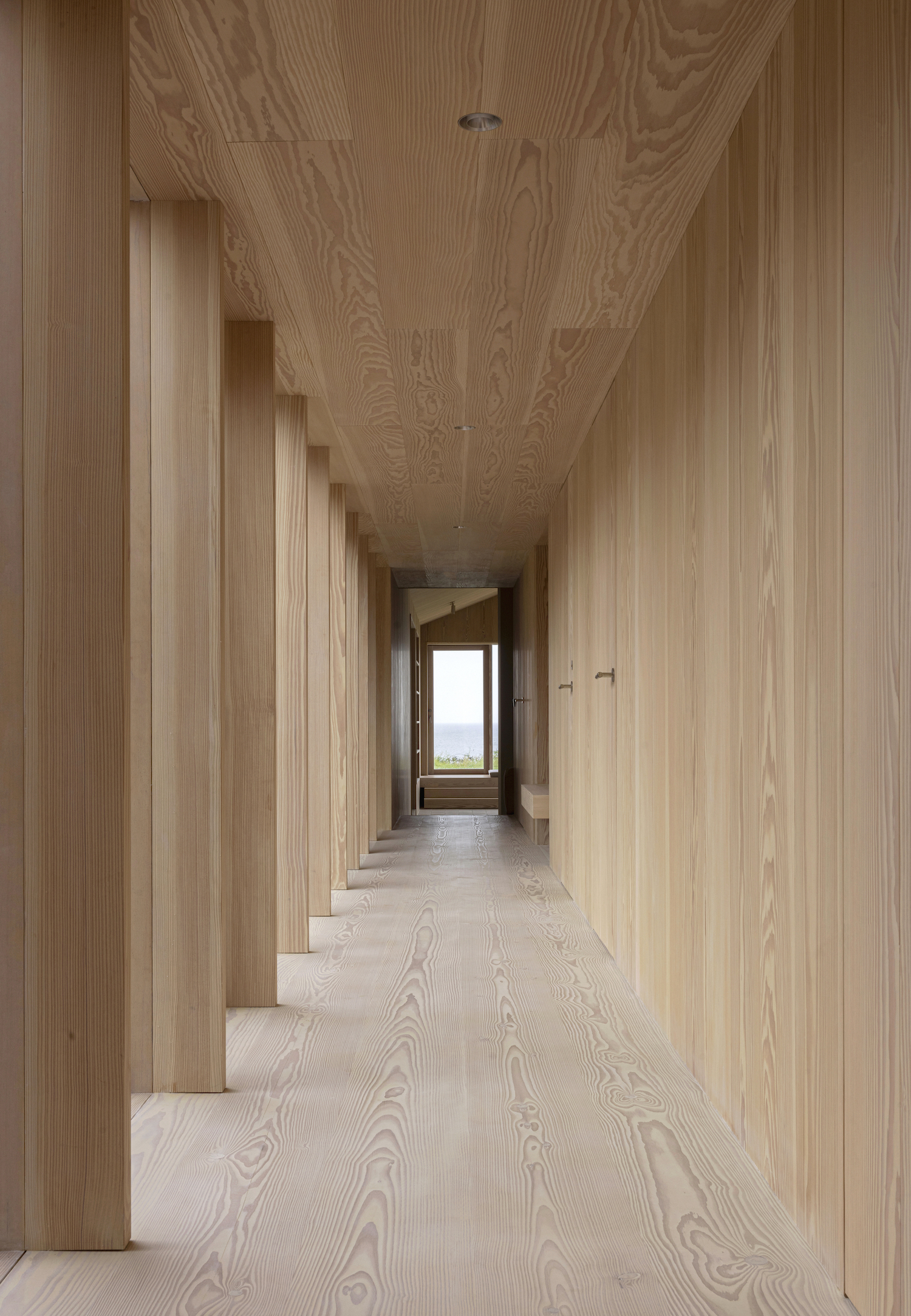 Heatherhill Beach House is a minimalist residence located in Jutland, Denmark, designed by Norm Architects. Perched among picturesque hills overlooking the beach and Kattegat, the Heatherhill Beach House seamlessly blends Danish architectural traditions with modern innovation. This holiday home champions simplicity and embraces nature, creating a tranquil retreat that harmonizes with its surroundings. Upon entering, visitors are immediately greeted by a calming atmosphere. Every aspect of the design aims to enhance the sense of arrival, integrating effortlessly with the natural beauty outside. The project reimagines the traditional Danish summerhouse within a wild landscape, evident in the use of wood as the primary material and the strategic placement of the house to minimize environmental impact while maximizing views.